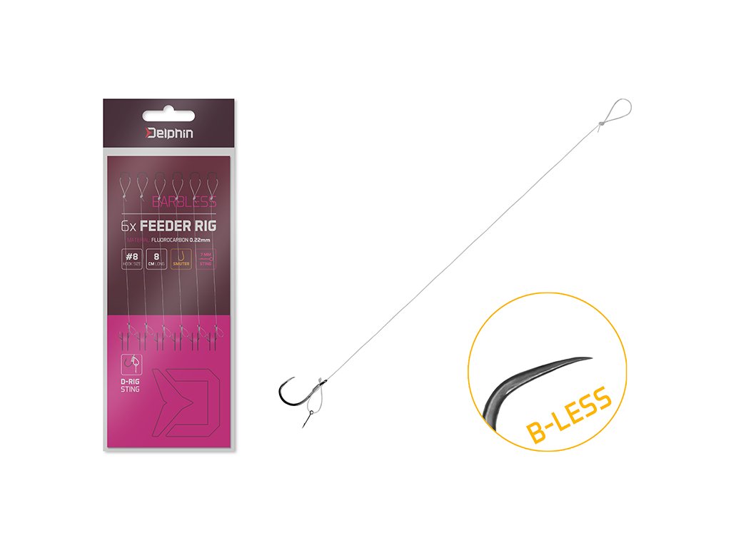 Delphin FLR D-rig zhotovený z fluorocarbonu je feederový návazec, který je navázán jako tzv. D-rig a je ukončen trnem. Jsou to velmi praktické hotové návazce, které umožní rybářům okamžitý lov či výměnu návazce bez zdlouhavého vázání. Na návazci je použit kvalitní háček typu SMUTER(B-LESS).Doplňkové parametry