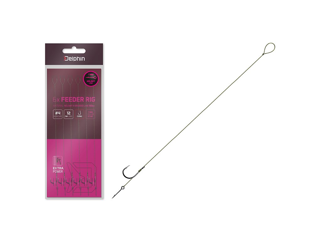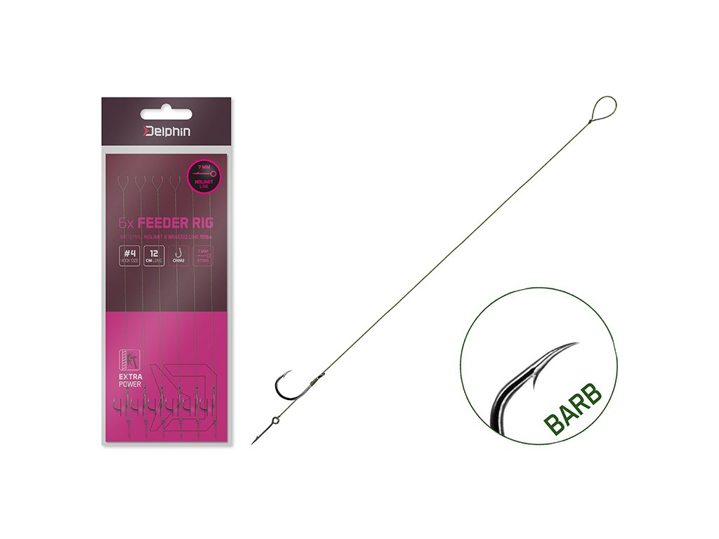 Delphin NOLIMIT STING zhotovený z 15lbs šňůry je feederový návazec, který je pod háčkem ukončen trnem. Jsou to velmi praktické hotové návazce, které umožní rybářům okamžitý lov či výměnu návazce bez zdlouhavého vázání. Na návazci je použit kvalitní háček typu CHINU(BARB) ve velikosti 6 nebo 4. Díky použití 15 lbs splétané šňůry NOLIMIT a většímu háčku je návazec uzpůsoben k lovu větších kaprovitých ryb method feederovou technikou.Doplňkové parametry