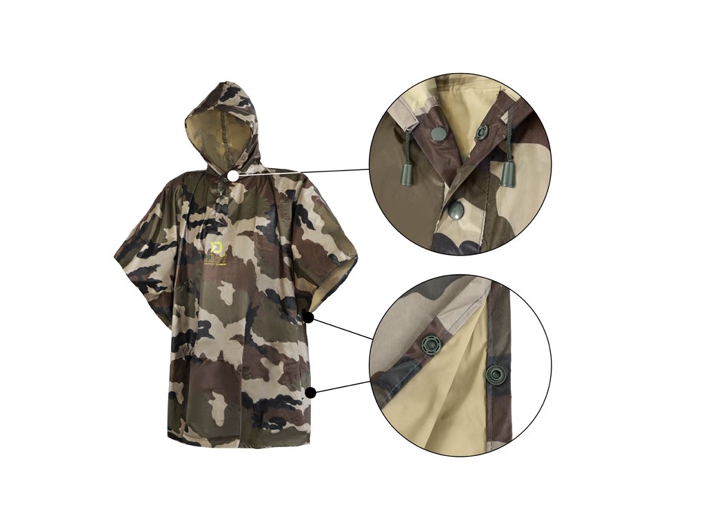 Ideální volbou do deštivých dnů je nepromokavé pončo Delphin PROOF Poncho, které vás dokonale ochrání před nepřízní počasí a překvapí svými kompaktními transportními rozměry. Je vyrobeno z odolné tkaniny s podlepenými švy a maskáčovým vzorem, která je kompletně voděodolná. PROOF Poncho disponuje také kapucí se zatahováním na šňůrku a tudíž je možné si ji přizpůsobit podle svých potřeb. Na hrudi a po stranách se nachází také zapínání na cvoky, což při rozepnutí napomáhá jednoduššímu oblečení ponča a zároveň po zapnutí zajišťuje odolnost vůči vodě v dané části těla. Střih ponča je volný a prostorný, díky čemuž se v něm budete cítit komfortně během nepříjemného počasí. Je baleno v praktickém pouzdru se zipem vhodným pro transport v suchém či mokrém stavu, čímž ochrání ostatní věci před nechtěným namočením. Technické parametry: Transportní rozměry: 32x27x5cmDoplňkové parametry