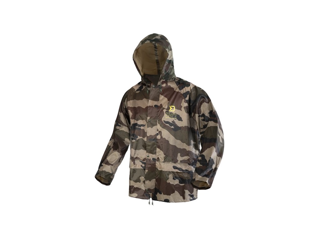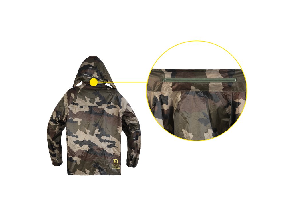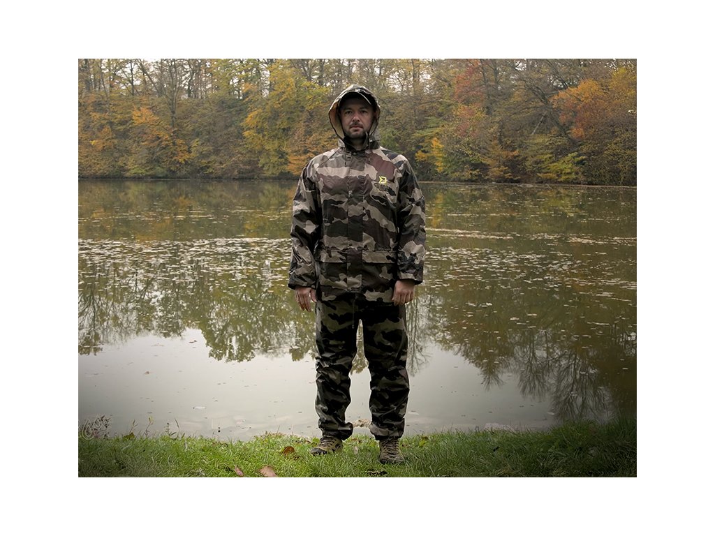 Do deštivých dnů je zde nepromokavý komplet Delphin PROOF, který vás dokonale ochrání před nepřízní počasí a překvapí svými kompaktními transportními rozměry. Je vyroben z voděodolné pogumované tkaniny s podlepenými švy a maskáčovým vzorem. Bunda Zapínání bundy je zajištěno pomocí odolného zeleného zipu překrytého lemem tkaniny se zapínáním na 4 plastové cvoky, což zvyšuje ochranu před deštěm. Kapuce je vybavena zatahováním na šňůrku, takže je možné přizpůsobit si ji podle svých potřeb a navíc si ji můžete srolovat a zazipovat do límcového prostoru. Límec je vyvýšen pro lepší překrytí krku a šíje a opatřený dalšími dvěma cvoky na připnutí kapuce. Konce rukávů mají přidané gumičky zabudované do jejich vnitřku, pro lepší utěsnění před vodou. V oblasti mezi lopatkami se z vnitřní strany nachází také síťka určená pro lepší odvětrávání. Spodní část bundy PROOF je opatřena šňůrkou s plastovými koncovkami pro zatažení pod úrovní pasu. Na obou stranách se nacházejí rozměrné kapsy s efektivním překrytím. Kalhoty Disponují pružnou gumičkou v oblasti pasu díky čemuž se snadno a rychle v případě potřeby oblékají. Celkový střih kalhot je volný a tudíž si je můžete natáhnout i na zimní oblečení. Spodní část je opatřena cvoky, pomocí kterých je lze zúžit. Oblek je balen v praktickém pouzdru se zipem vhodným pro transport v suchém či mokrém stavu, čímž ochrání ostatní věci před nechtěným namočením. Technické parametry: Materiálové složení: 100% Polyester s PVC povrchem Transportní rozměry: 32x27x5cmDoplňkové parametry
