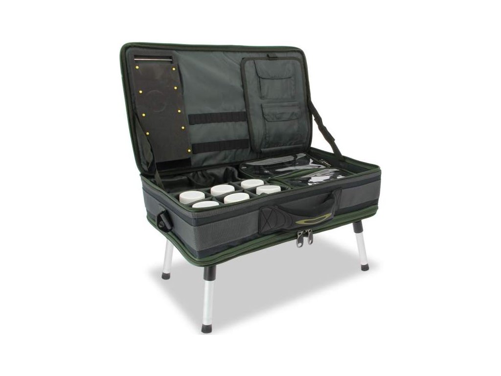 Velice povedený, kvalitně zpracovaný kufřík s integrovaným stolkem. Stolek lze z kufříku vyjmout, tím získáte klasický stolek do bivaku a kufřík na vše nezbytné. Velmi robustní zpracování a kvalitní zipy. Už nikdy nebudete hledat potřebné vybavení všude po bivaku. Vše je přehledné a na jednom místě. Má vydatné polstrování jak uvnitř kufru, tak na poutku a popruhu přes rameno. Spousta možností jak vnitřek kufříku individuálně upravit a nastavit. Ideální na delší výpravy pro kapraře do bivaku.