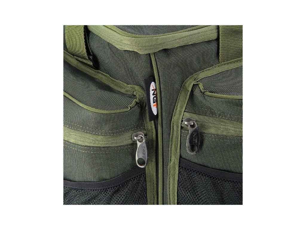Velká přenosná taška pro rybáře s prostornou hlavní přihrádkou a třemi velkými vnějšími kapsami na zip a ze síťoviny. Samozřejmostí jsou polstrované rukojeti a nastavitelný ramenní popruh s polstrováním.