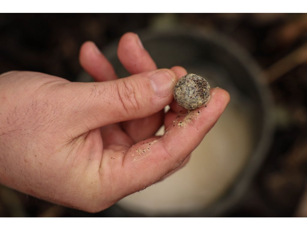 Po vhození do vody vytvoří kuličky v okolí silně zakalený mrak, jehož drobné částečky nenechají v klidu žádnou rybu!