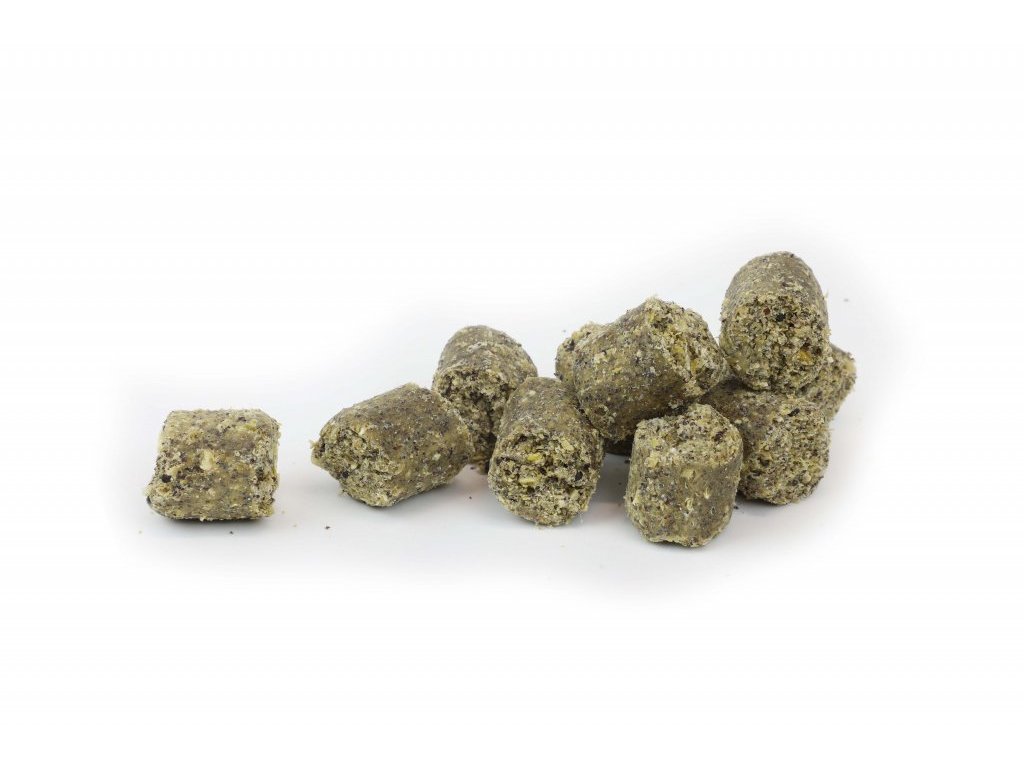 Po vhození do vody vytvoří pelety v okolí silně zakalený mrak, jehož drobné částečky nenechají v klidu žádnou rybu! Pelety nabízíme ve dvou průměrech (3 a 18 mm) a v 1 kg balení.
