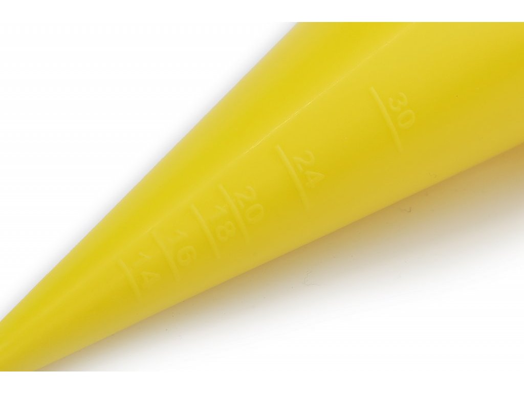 Žlutá špička, na které se nachází stupnice průměrů, podle které je možné špičku seříznout pod potřeby a to až na průměr 34 mm.