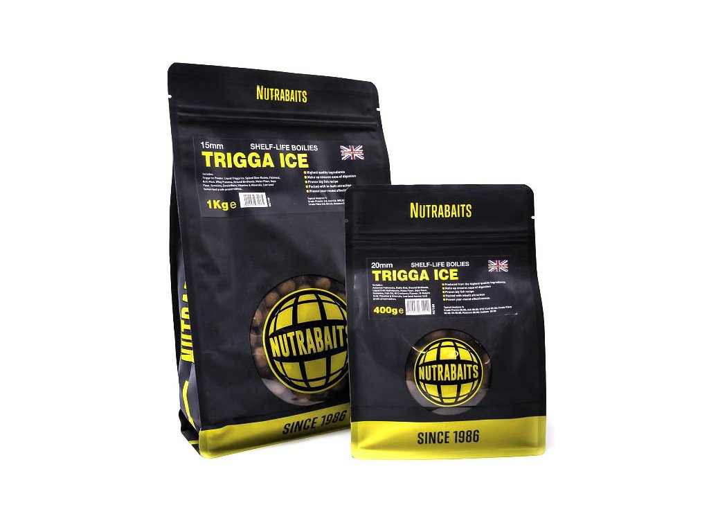 Trigga Ice - Winterizovaná verze legendárního boilie Trigga je skvělá ve studené vodě, ale funguje výborně celoročně. Trigga Ice obsahuje předtrávené rybí moučky, nízkotučné proteiny, Emulsifier a oproti Trigga boilie navíc pálivý Oleoresin olej a Spice sypké extrakty, tekutou potravu Trigga Ice a další skvělé přísady.