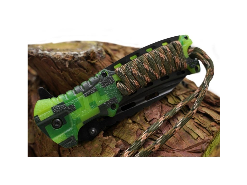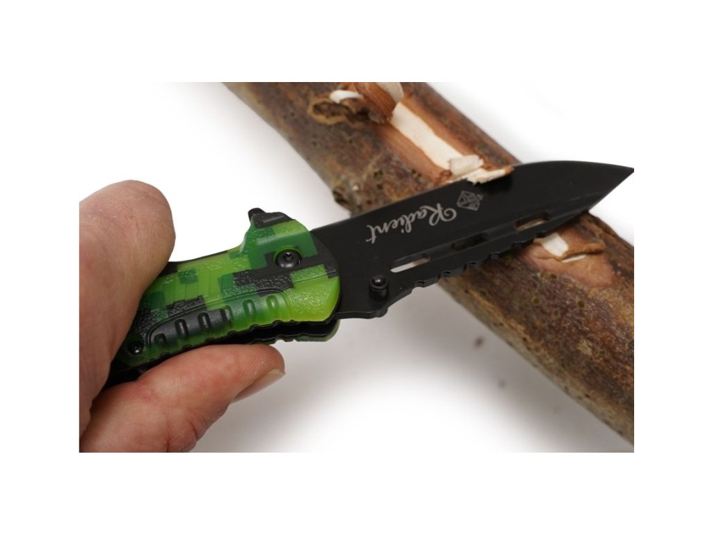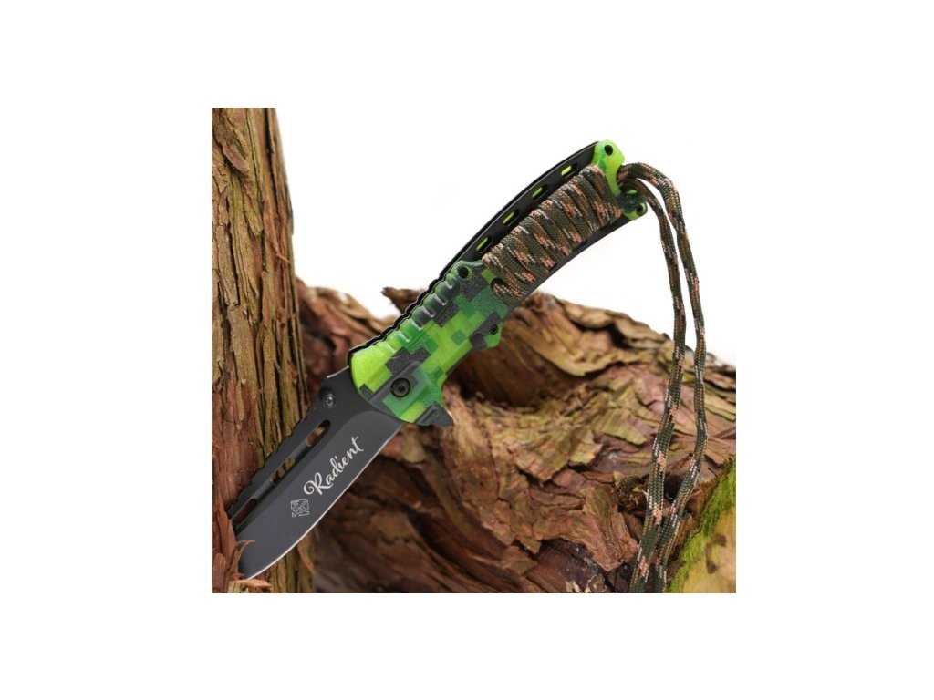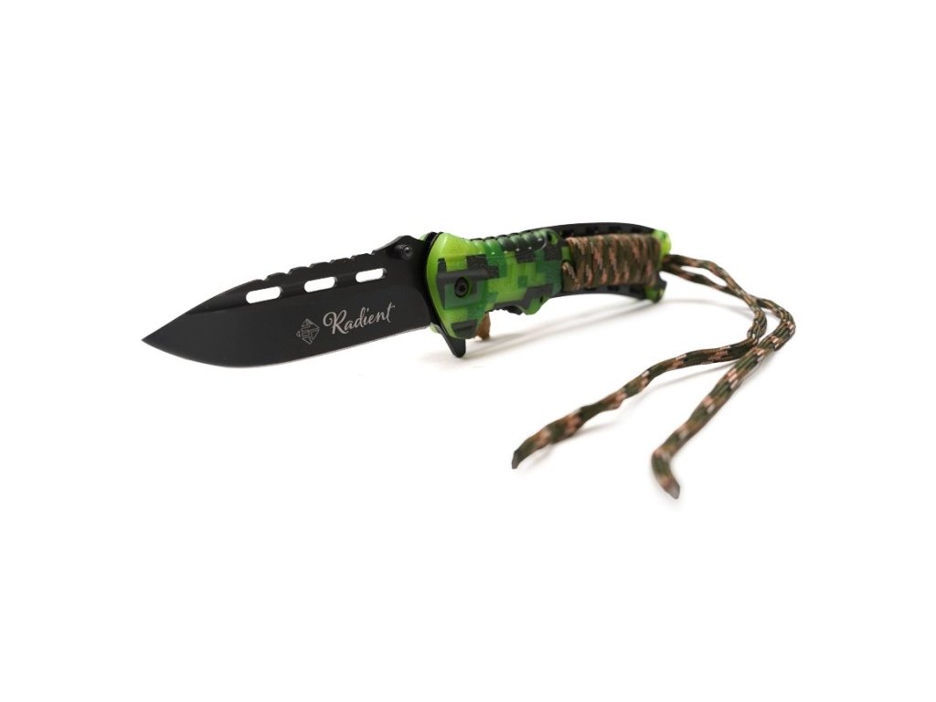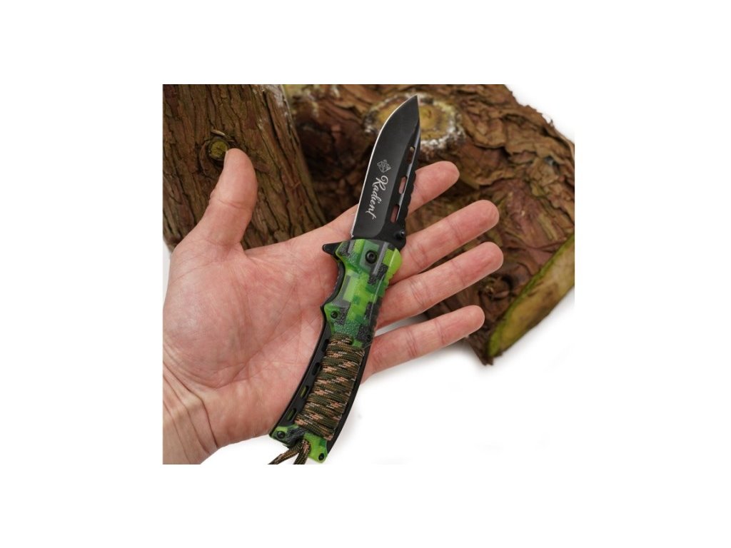 Nůž skládací Radient zelený maskáč 21,5cm + podpalovač parametry: