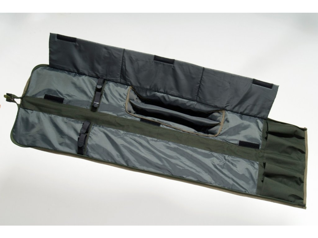 Kvalitně navržená série obalů na trojdílné nebo dvojdílné kaprové pruty s kompletním polstrováním, vyrobená z pevného a nepromokavého materiálu B-POL600D. Obal je vybaven přepravními uchy i polstrovaným ramenním popruhem, prostornými kapsami na deštník, vidličky a další příslušenství. Je osazen desénovými táhly zipů MIVARDI.145 - pouzdro pro pruty třídílné - délka 3,90m.