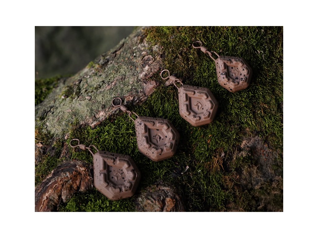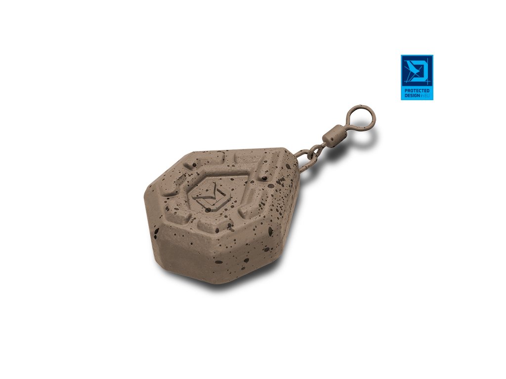 Je inovativní zátěž designovaná týmem značky Delphin, kterou lze použít při lovu na měkkém nebo členitém dně, nebo při lovu na tekoucích vodách. Jedinečný hranatý tvar umožňuje vytvořit kompaktnější zátěž, která má při menších vnějších rozměrech stejnou hmotnost jako běžně prodávaná olova podobného typu. To zaručí výborné nahazovací vlastnosti a rychlé klesání ke dnu. Pro docílení co nejdelších a nejpřesnějších hodů je navíc spodní část zátěže rozšířena, aby se zde koncentrovalo více hmoty, a tak prodlužuje vaše hody o další důležité metry! Výstupky na hlavních plochách zátěže eliminují klouzání po dně. Povrch zátěže je chráněn barvou v přírodních odstínech hnědé s černými frkanci, což dokonale kamufluje její přítomnost na dně. Zvětšené očko na obratlíku umožňuje snazší a rychlejší upevnění zátěže na montáž. PROTECTED DESIGN - Tento produkt byl kompletně navržen designéry značky Delphin. Jeho design a technické řešení jsou natolik unikátní, že je registrován a chráněn na území celé Evropské unie.Doplňkové parametry