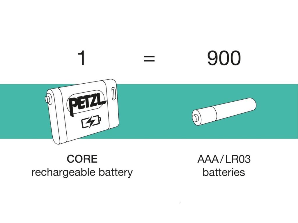 Dobíjecí lithium-ionový akumulátor o vysoké kapacitě pro čelové svítilny Petzl vybavené technologií HYBRID CONCEPT: TIKKID, TIKKINA, TIKKA, ACTIK, ARIA a IKO. Zaručí vynikající světelný výkon i v nízkých teplotách. Dobíjí se přímo pomocí integrovaného USB_C portu. Akumulátor CORE se dá použít jako hlavní zdroj energie (při častém použití je to ekonomické řešení).