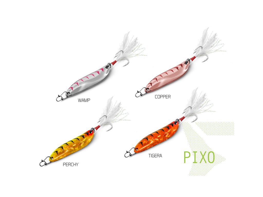 Plandavky série Delphin PIXO jsou ideálními umělými nástrahami pro lov větších dravých ryb jako je štika, candát nebo bolen. Jejich tělo je vyrobeno ze zinkové slitiny. Jsou vybaveny kvalitním a pevným trojháčkem se speciální úpravou hrotů Cutting point, který zajistí snazší proniknutí háku i do té nejtvrdší tlamy našich dravců. Také jsou vybaveny i karabinkou FAST LOCK SNAP kvůli zjednodušenému měnění nástrah. Kromě větších dravců jimi nepohrdnou ani menší dravé ryby na jezerech či vodních tocích. Plandavky PIXO mají zvlněný tvar těla, které dokonale imitují živou nástrahu. Technické parametry: Model: PIXO Hmotnost: 10g Délka těla plandavky: 5,6cmDoplňkové parametry