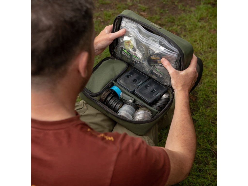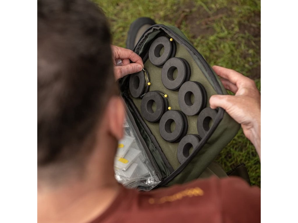 Nabízí uskladnění menších doplňků a věcí, které zůstávají přehledné pro možnost rychlého použití. Vrchní část je opatřena 5 transparentními peněženkami na zipy a 8 kotoučovými cívkami pro vaše návazce. Spodní část obsahuje přihrádky na zip a jednu dělitelnou komoru na suchý zip pomocí Velcro systému. Specifikace: - originální Bespoke zipy - použitý materiál 600D Nylon - 5 transparentních peněženek na zip - 8 kotoučových cívek pro uskladnění vašich návazců - jednotlivé přihrádky jsou opatřeny zipem - dělitelnou komoru pomocí Velcro systému (suchý zip) - kapsy na uskladnění ostatních doplňků - rozměry: 300 x 200 x 120 mm Odkaz na video: http://www.youtube.com/watch?v=W_FWQRP_8REDoplňkové parametry