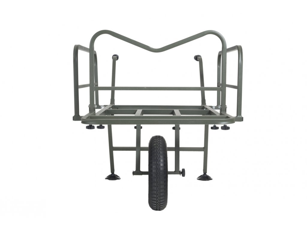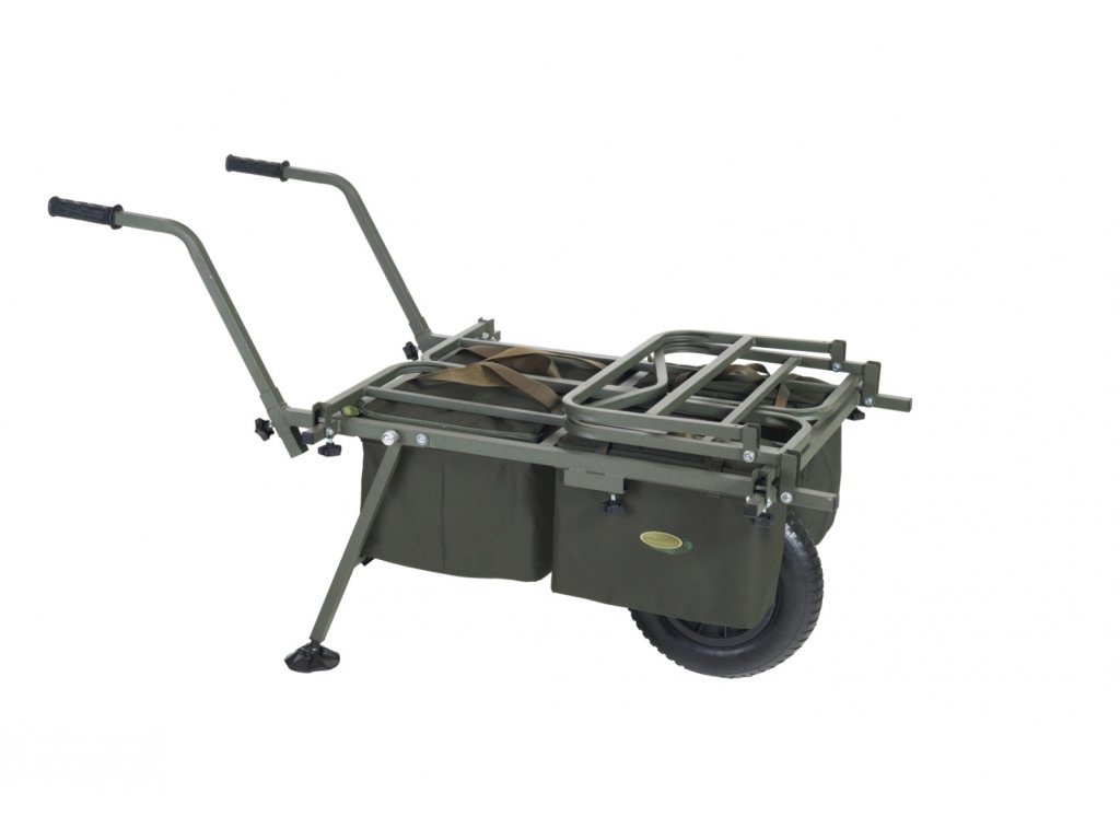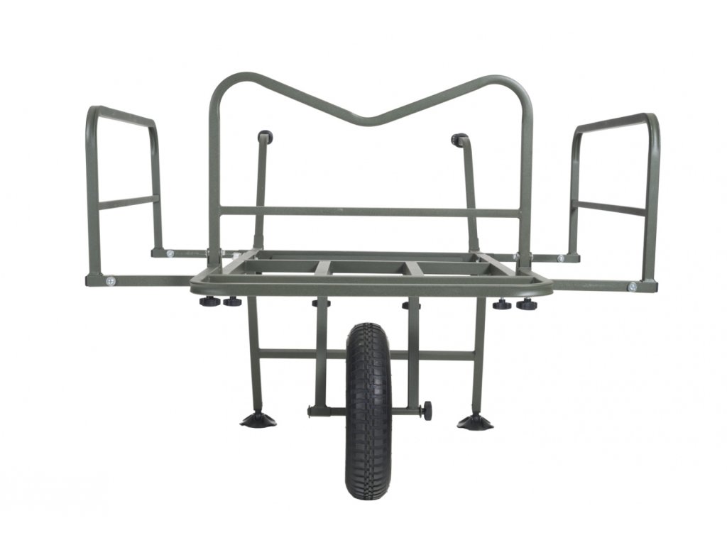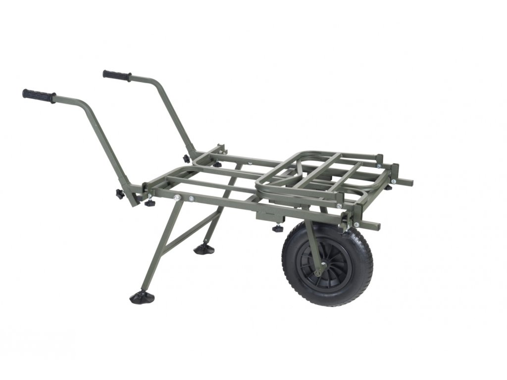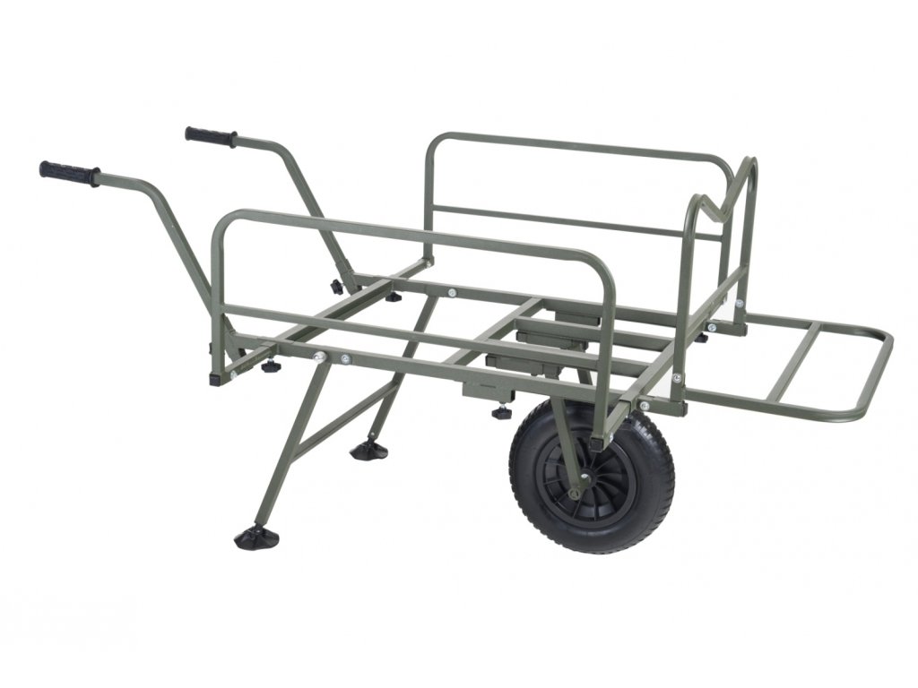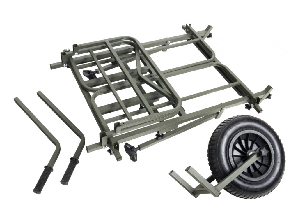 Nekompromisní a dokonale variabilní systém pro přepravu kompletní výbavy na lovné místo. Rám vozíku umožňuje snadnou přepravu i největších XXL transportních tašek v přední části a boční výsuvné díly vyvoří dostatečně velký prostor pro bivak, lehátko, křeslo a další doplňky. Systémové tašky s prakticky řešeným uchycením v rámu pomocí kovových obručí pojmou velké množství drobnějšího příslušenství. Pohodlné a výškově stavitelné rukojeti spolu s výborně navrženým těžištěm zajišťují snadnou ovladatelnost plně naloženého vozíku. Pokud je třeba přepravit opravdu těžký náklad, lze k vozíku velmi snadno přidat druhé kolo a zvýšit tak jeho reálnou nosnost.Pozor – huštění pneumatiky vozíku - na kole je napsáno 25 PSI, ale nejedná se o Bary! Převedeno na Bary je to 1,723 Bar - ideální je hustit na 1,5 Baru!