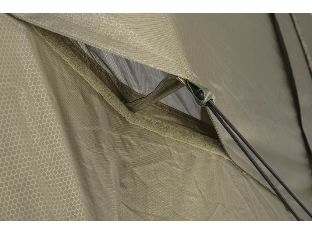 Mivardi Base Camp XXL je velký, robustní a dokonale stabilní přístřešek, vyladěný do posledního detailu, který je zároveň snadno a rychle postavitelný. Nabízí však mnohem více než jen velký prostor, dveře a okna. Jeho základem je mimořádně stabilní rám se zdvojenými stojnami, propojenými rozpěrnými tyčkami s pevnými klipy na obou koncích. Ty výrazně zpevňují konstrukci a průhyb stojen. Dvě z těchto rozpěrných tyček jsou osazeny praktickými držáky prutů na suchý zip. Všechny hlavní části rámu jsou teleskopické a jsou vybaveny spolehlivým systémem pro snadnou fixaci výsuvu. Teleskopické části rámu rovněž umožňují dosažení kompaktní přepravní velikosti a zajišťují i rychlé a pohodlné rozložení / složení přístřešku. V extrémních podmínkách je možné ještě zvýšit stabilitu přístřešku použitím čtyř kotvících lanek. Sestavení i složení přístřešku snadno zvládne jedna osoba. Plášť z materiálu M-TEC300 s hexagonální texturou disponuje vodním sloupcem 8000mm a zvýšenou mechanickou odolností. Na zadní stěně se nachází velké okno s moskytiérou, nylonovým pláštěm a lze na něj připnout pomocí suchých zipů transparentní PVC plášť. Je též vybavené funkcí mikroventilace při použití rozpěry ve spodní části okna. Přední stěna je tvořena otevíratelným vchodovým panelem s obrovským oknem, osazeným moskytiérou a nylonovým pláštěm. Přední panel typu letter box lze otevřít po stranách a klasicky srolovat nahoru nebo jej částečně rozepnout a otevírat postupně shora dolů. V přední části přístřešku se nachází velká markýza s vlastní sklolaminátovou konstrukcí. Při rozložení je podepřena dvěma stojnami a zajištěna kotvícími lanky. Markýzu je možné kompletně sklopit podél přední stěny přístřešku a není ji třeba vždy rozebírat. Speciálně řešené napojení markýzy na přístřešek účinně brání hromadění vody na střeše i při prudkém dešti. Boční stěny přístřešku jsou vybaveny velkými otevíratelnými okny s nylonovým pláštěm a moskytiérou s funkcí mikroventlilace. Boční panely typu letter box je rovněž možné částečně otevřít či úplně odepnout. Unikátním prvkem přístřešku Mivardi Base Camp je samostatně dostupná sada pro napojení bivaků. Jedná se o dvě univerzální boční manžety, které lze připevnit k přístřešku Base Camp místo odepnutých bočnic. Tyto manžety pak slouží ke snadnému napojení téměř libovolného bivaku či brolly na přístřešek Base Camp. Mezi další samostatně dostupné příslušenství patří sada čtyř vnitřních závěsných organizérů nebo masivní odolná podlaha. Přístřešek je standardně dodáván v dostatečně velké transportní tašce pro snadné uložení sbaleného přístřešku. Tato taška z nylonu 600D je nepromokavá a omyvatelná.Doplňkové parametry