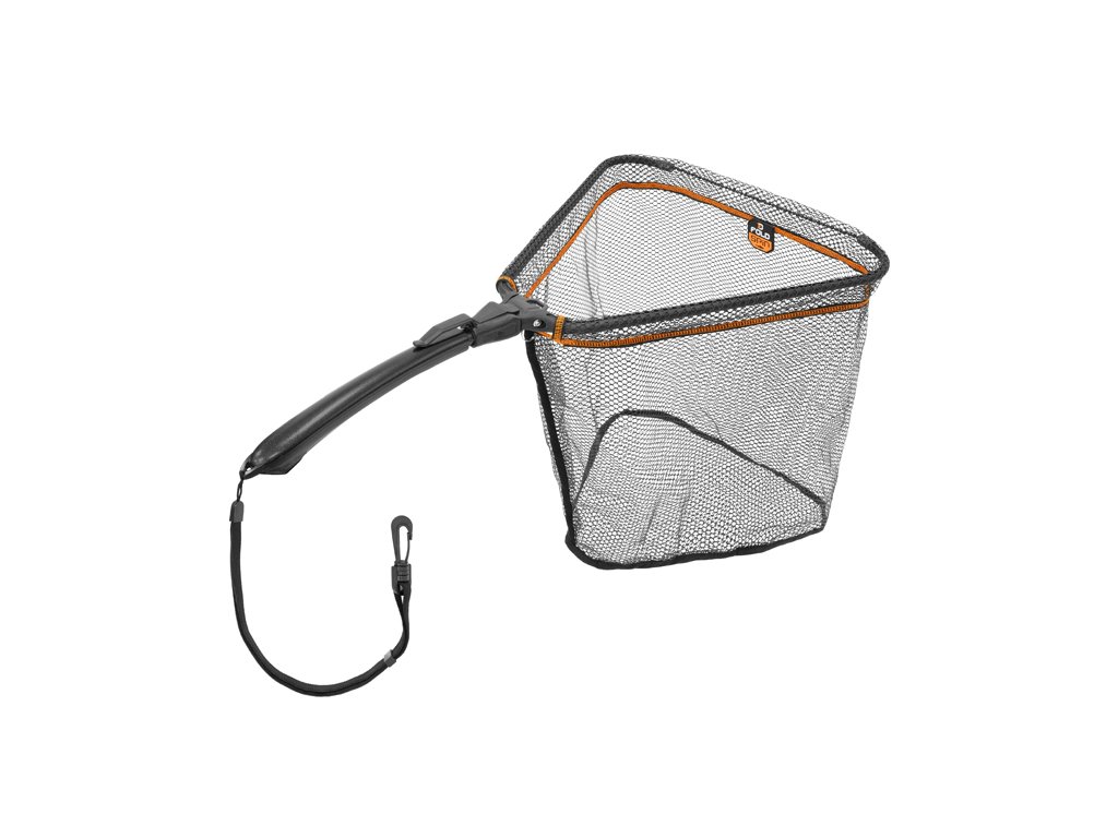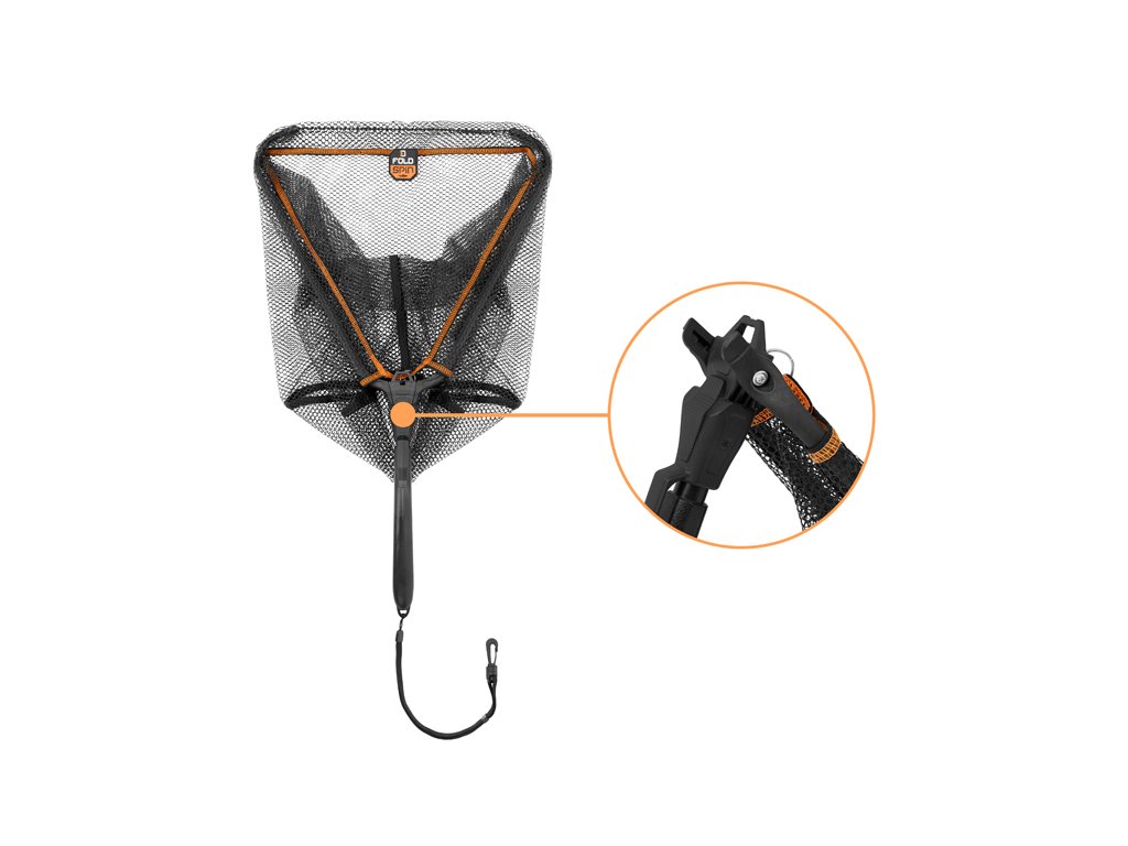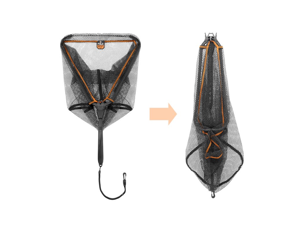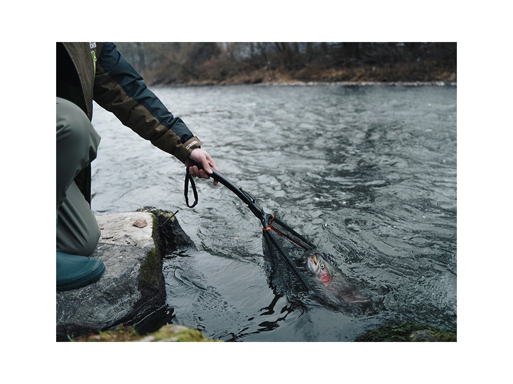 Je praktický podběrák, který ocení zejména vláčkaři a muškaři lovící na tekoucích vodách. Díky kompaktním rozměrům a klipu na rukojeti jej lze upevnit na opasek brodících kalhot, čímž je okamžitě k dispozici. Jednoduchý mechanismus umožňuje jeho rychlé rozložení a složení jednou rukou, což oceníte zejména při zdolávání ryby při zabrodění ve vodě. Měkká pogumovaná síťka je šetrná k rybě a zároveň nenasává nepříjemné pachy.Ergonomicky tvarovaná rukojeť poskytuje spolehlivý úchop za každých podmínek. Na konci rukojeti se nachází elastický popruh s karabinou pro uchycení například na opasek.