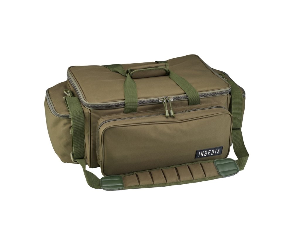 Obsahuje velkou hlavní komoru, která v pohodě uskladní izolační tašku Insedia od Prowess nebo další pouzdra na doplňky ze stejné řady zavazadel Insedia. Dále obsahuje 3 kapsy na zip, které jsou soustředěné po obvodu tašky. Nechybí ramenní popruh opatřený polstrováním pro komfortní nošení. Pro snadné přenášení pak slouží dvě madla, které lze spojit suchým zipem do sebe. Specifikace: - jedna hlavní komora - tři kapsy na zip - polstrovaný ramenní popruh - madlo pro snadné přenášení - rozměry: 46 x 32 x 22 cm - barva: zelená - materiál: 100% nylon s PVCDoplňkové parametry