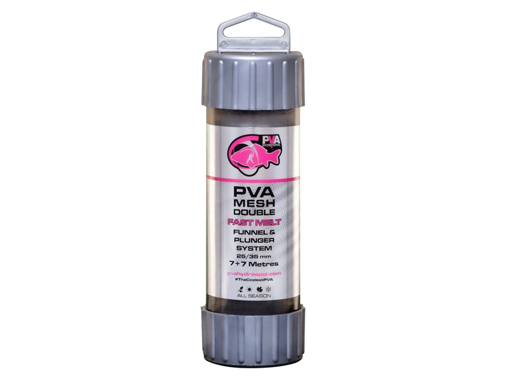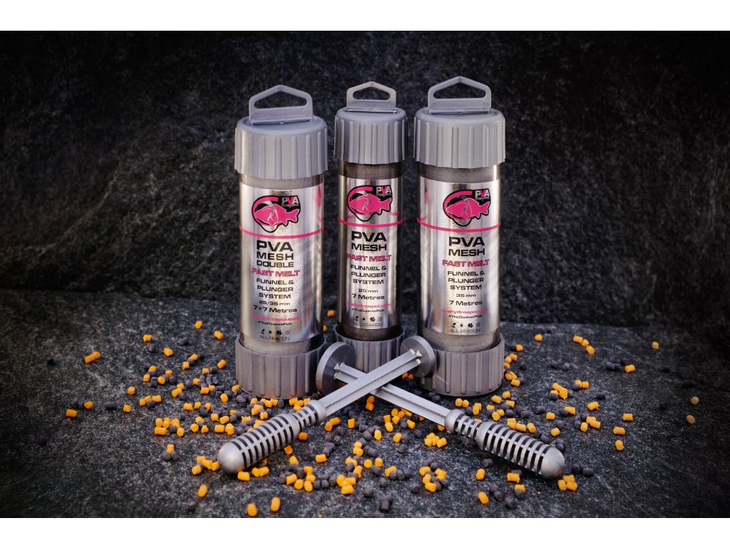 Společnost PVA Hydrospol Vám přináší novou řadu punčoch s označením Fast Melt. Jak název napovídá, jedná se o rychlorozpustnou verzi punčochy. Jako výrobci PVA produktů jsme usilovně pracovali na variantě punčoch, která zvládne plnit hned několik vlastností najednou. Pro výrobu nové punčochy jsme opět zvolili kvalitní japonská vlákna, která mají poloviční čas rozpadu oproti vláknům v naší klasické verzi. Zakládáme si na kvalitě, ale i stylu pletení punčoch, naši zákazníci se mohou znovu těšit na hustý micro-mesh, do kterého lze plnit drobné krmení, sypké materiály a použít ji tak může opravdu každý rybář. Nová řada Fast melt je nyní zabalená do kompaktnějšího 15 cm balení s označením short system, celý program jsme vytvořili do luxusní stříbrné barvy a Vy jej tak lehce rozpoznáte. Verze double system je skvělá varianta pro rybáře, kteří používají oba průměry punčoch. Tubus obsahuje 7 + 7 m punčochy fast melt v průměrech 25 mm a 35 mm + 2x plnič a oboustranné pěchovadlo. Na rozdíl od naší klasické verze je doba rozpadu ledové vodě poloviční! Díky zvolenému úpletu můžete PVA punčochy Fast melt používat dokonce i v teplých vodách. To z ní dělá skvělou punčochu pro celoroční použití.