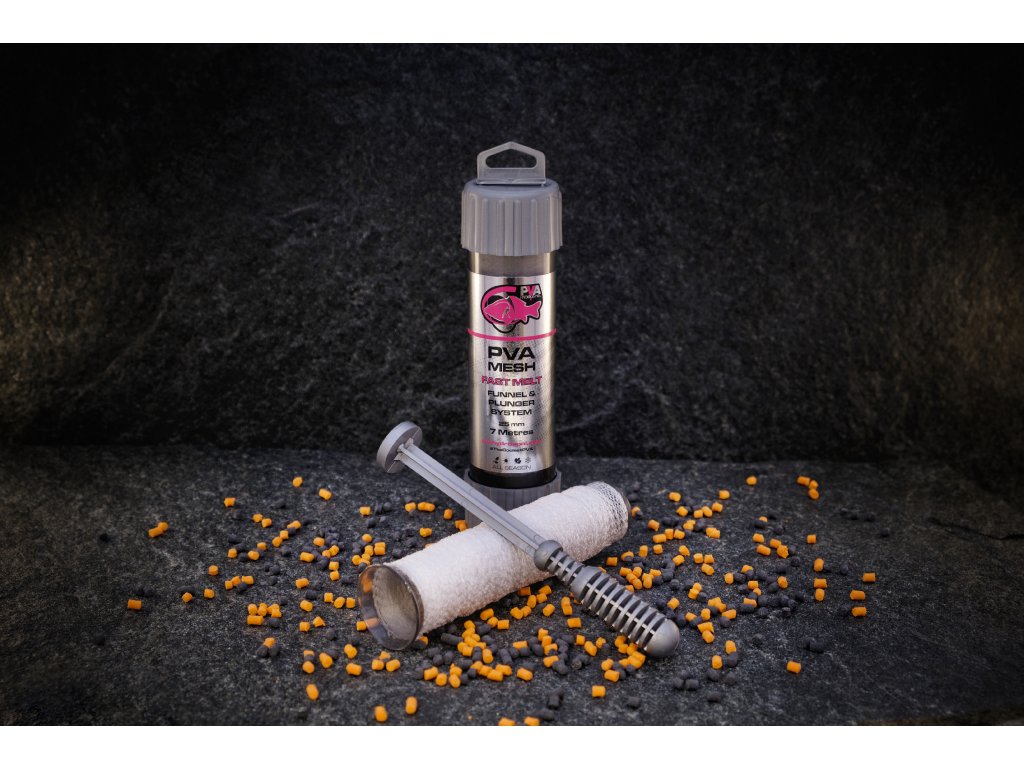 Společnost PVA Hydrospol Vám přináší novou řadu punčoch s označením Fast Melt, přesněji system 25 mm s návinem 7 m. Jak název napovídá, jedná se o rychlorozpustnou verzi punčochy. Jako výrobci PVA produktů jsme usilovně pracovali na variantě punčoch, která zvládne plnit hned několik vlastností najednou. Pro výrobu nové punčochy jsme opět zvolili kvalitní japonská vlákna, která mají poloviční čas rozpadu oproti vláknům v naší klasické verzi. Zakládáme si na kvalitě, ale i stylu pletení punčoch, naši zákazníci se mohou znovu těšit na hustý micro-mesh, do kterého lze plnit drobné krmeni, sypké materiály a použít ji tak může opravdu každý rybář. Nová řada Fast melt je nyní zabalená do kompaktnějšího 15 cm balení s označením short system, celý program jsme vytvořili do luxusní stříbrné barvy a Vy jej tak lehce rozpoznáte. Na rozdíl od naší klasické verze je doba rozpadu ledové vodě poloviční! Díky zvolenému úpletu můžete PVA punčochy Fast melt používat dokonce i v teplých vodách. To z ní dělá skvělou punčochu pro celoroční použití.