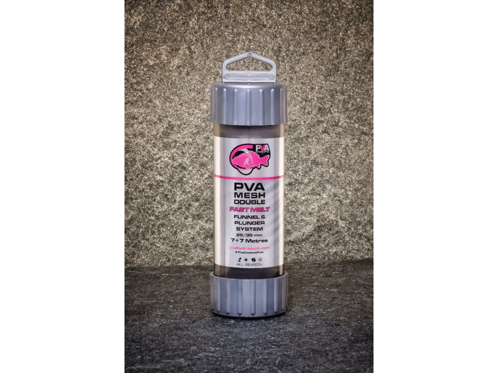 Společnost PVA Hydrospol Vám přináší novou řadu punčoch s označením Fast Melt. Jak název napovídá, jedná se o rychlorozpustnou verzi punčochy. Jako výrobci PVA produktů jsme usilovně pracovali na variantě punčoch, která zvládne plnit hned několik vlastností najednou. Pro výrobu nové punčochy jsme opět zvolili kvalitní japonská vlákna, která mají poloviční čas rozpadu oproti vláknům v naší klasické verzi. Zakládáme si na kvalitě, ale i stylu pletení punčoch, naši zákazníci se mohou znovu těšit na hustý micro-mesh, do kterého lze plnit drobné krmení, sypké materiály a použít ji tak může opravdu každý rybář. Nová řada Fast melt je nyní zabalená do kompaktnějšího 15 cm balení s označením short system, celý program jsme vytvořili do luxusní stříbrné barvy a Vy jej tak lehce rozpoznáte. Verze double system je skvělá varianta pro rybáře, kteří používají oba průměry punčoch. Tubus obsahuje 7 + 7 m punčochy fast melt v průměrech 25 mm a 35 mm + 2x plnič a oboustranné pěchovadlo. Na rozdíl od naší klasické verze je doba rozpadu ledové vodě poloviční! Díky zvolenému úpletu můžete PVA punčochy Fast melt používat dokonce i v teplých vodách. To z ní dělá skvělou punčochu pro celoroční použití.