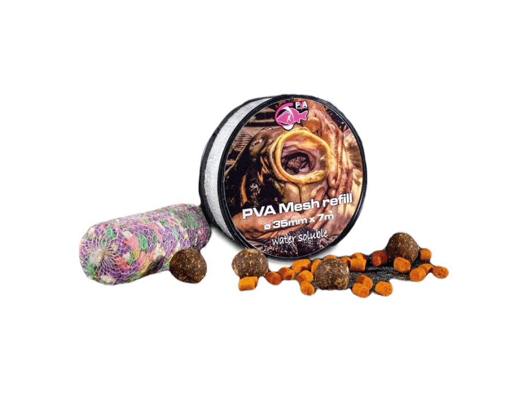 Náhradní PVA micro-mesh punčocha v průměru 35 mm a návinu 7 m je pletená z kvalitních japonských vláken formou hustého micro-meshe. PVA náhrady jsou vhodné k doplnění punčochy na prázdný tubus. Průměr 35 mm je pleten z 36 PVA vláken. Naše punčochy můžete plnit sypkými materiály nebo drobnými peletami, aniž by Vám zvolená směs propadávala úpletem. Čas rozpustnosti závisí na teplotě vody. V teplé vodě se doba rozpadu pohybuje okolo 45 sekund, naopak v ledové vodě to může být až 8 minut. Veškerý náš PVA program je vhodný pro celoroční použití.