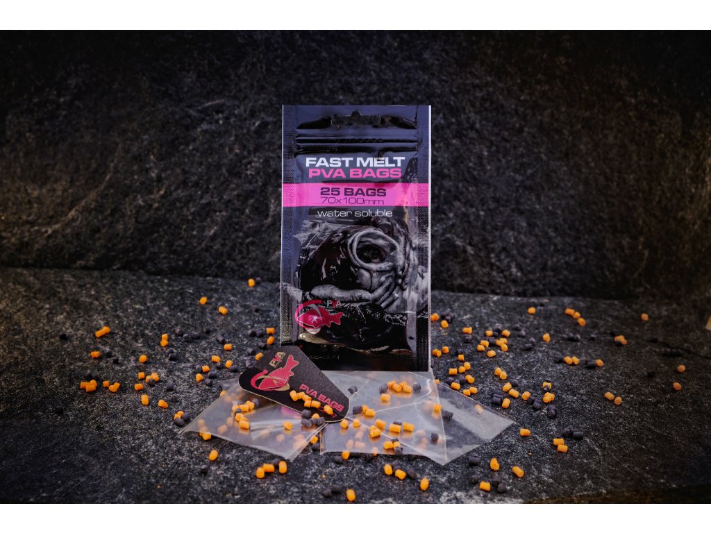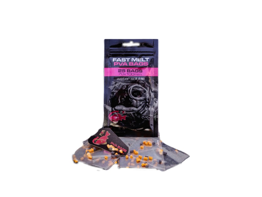 Společnost PVA Hydrospol Vám přináší kompletní řadu PVA sáčků hned ve třech rozdílných rozměrech. Rozměr 70 x 100 mm je z naší rodiny sáčků ten nejmenší a zároveň nejvhodnější pro daleké hody. Kdo nás trochu zná, tak ví, že právě naši firmu jsme vybudovali na PVA sáčcích. Jsme rádi, že je opět zařazujeme do našeho portfolia. Tentokrát jsme nad sáčky přemýšleli malinko jinak, než tomu bylo v minulosti. Prioritou bylo u sáčků zvolit podélné sváry po bocích, což je umožňuje opravdu pořádně napěchovat. Nemusíte tak bát protržení spodní části při plnění nebo utahování rožků sáčku. Zvolili jsme kvalitní japonskou PVA fólii, která není perforovaná. Díky tomu je práce sáčkem mnohem příjemnější. PVA sáčky jsou skvělou volbou k odprezentování nástrahy v lovném místě. Rybář je může naplnit opravdu čímkoliv včetně tekutých složek a docílit efektu, který je s punčochou nemožný. Všechny naše sáčky jsou zabalené do praktického zip saku. Balení obsahuje 25 sáčků a originální lopatku PVA Hydrospol pro pohodlné plnění.