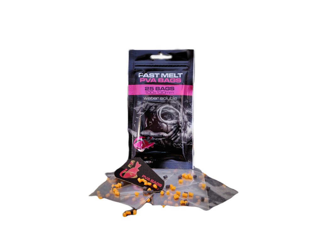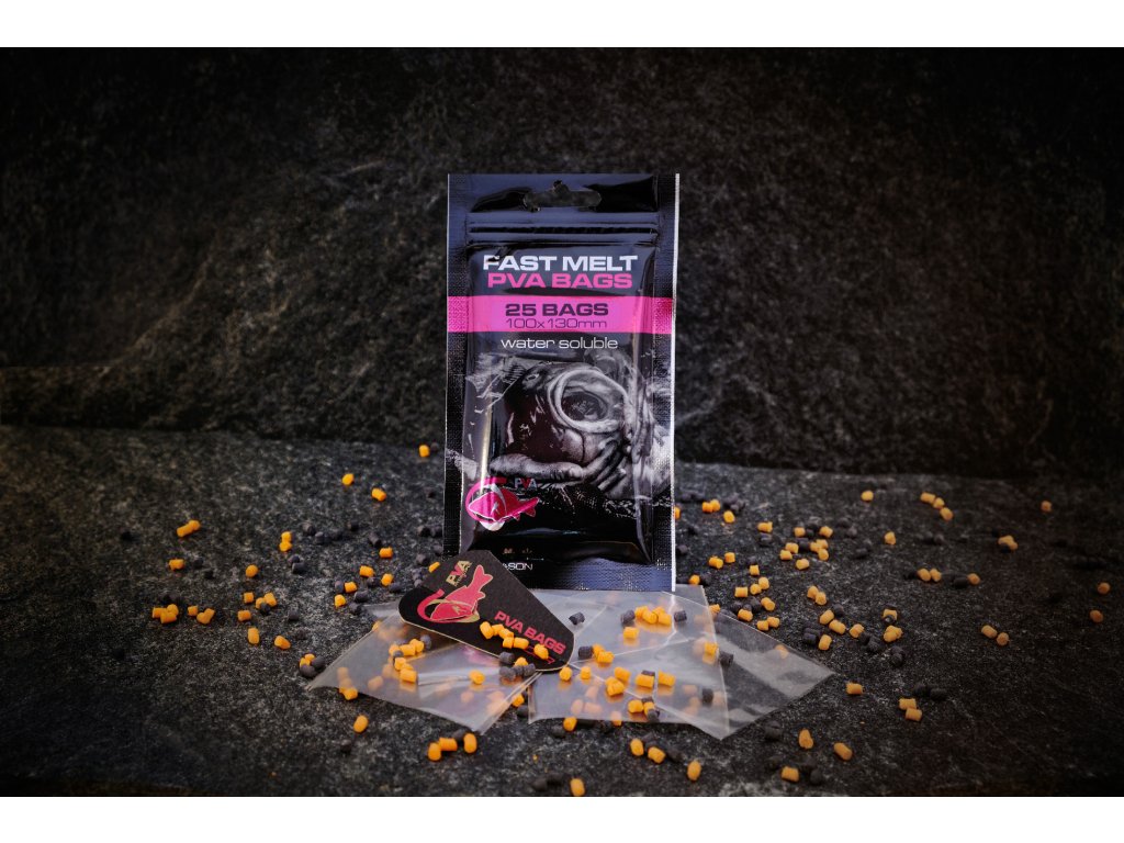 Společnost PVA Hydrospol Vám přináší kompletní řadu PVA sáčků hned ve třech rozdílných rozměrech. Rozměr 100 x 130 mm je z naší rodiny sáčků nejširší. Perfektně se hodí pro prezentaci koncové montáže, včetně větších in-line systémů zátěží. Kdo nás trochu zná, tak ví, že právě naši firmu jsme vybudovali na PVA sáčcích. Jsme rádi, že je opět zařazujeme do našeho portfolia. Tentokrát jsme nad sáčky přemýšleli malinko jinak, než tomu bylo v minulosti. Prioritou bylo u sáčků zvolit podélné sváry po bocích, což je umožňuje opravdu pořádně napěchovat. Nemusíte se tak bát protržení spodní části při plnění nebo utahování rožků sáčku. Zvolili jsme kvalitní japonskou PVA fólii, která není perforovaná. Díky tomu je práce se sáčkem mnohem příjemnější. PVA sáčky jsou skvělou volbou k odprezentování nástrahy v lovném místě. Rybář je může naplnit opravdu čímkoliv včetně tekutých složek a docílit efektu, který je s punčochou nemožný. Všechny naše sáčky jsou zabalené do praktického zip saku. Balení obsahuje 25 sáčků a originální lopatku PVA Hydrospol pro pohodlné plnění.