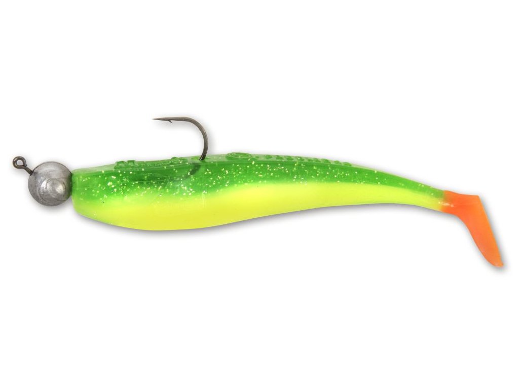 50stupňové postavení upevňovacího očka umožňuje to, že gumové rybky ihned po zatažení vystoupají vzhůru a během fáze klesání déle a pomaleji kloužou ke dnu – daleko lépe než běžná jigová hlavička s 90stupňovým postavením očka pro vertikální rybaření! Dalšími plusovými body jsou pevné jigové háčky ostré jako břitva, které se společně s minilímcem starají o perfektní oporu nástrah z měkké gumy bez vytrhávání. K tomu ještě nabízí široký oblouk pro optimální zachycení v tlamě dravců.