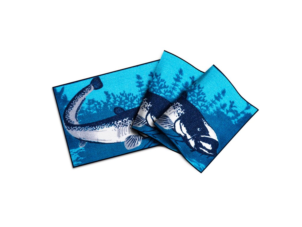 Excelentní rohož CatchMe! SUMEC. Určitě potěší každého rybáře. Tato rohož je vyrobena z odolného materiálu, okraj je obšitý modrým šitím a ze spodní části je ošetřena latexovou vrstvou. Rozměr 60x40 cm je velmi kompaktní a hodí se před všechny vstupní dveře. Ukažte návštěvě už u vchodu kdo je doma pánem :) Unikátní dizajn zobrazující sumce určitě zahřeje srdce nejednoho sumčaře.Doplňkové parametry