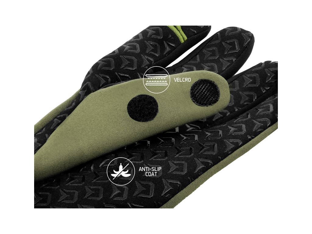 Neoprenové rukavice Delphin RWR Free udrží vaše ruce v teple i v těch nejchladnějších dnech. Detailní zpracování rukavic posouvá level zimního rybaření na zcela jinou úroveň. Velkým pozitivem je i pogumovaná plocha na dlani, která je vybavena protiskluzovou, pogumovanou vrstvou s inovativním designem Delphin loga. Odnímatelné konečky na konci palce a ukazováčku, s možností uchycení suchým zipem, Vám usnadní manipulaci s drobnou bižuterií, či urychlí úpravu montáže. Aby se Vám do rukavic nedostával chlad či nechtěná voda, jejich utěsnění je tvořeno všitou gumou a dodatečně přizpůsobitelným dotahovacím pásem se suchým zipem. Barevná kombinace zelené a černé barvy dělá z rukavic RWR Free dokonalého společníka na rybaření, ale i jiné volnočasové aktivity.Doplňkové parametry