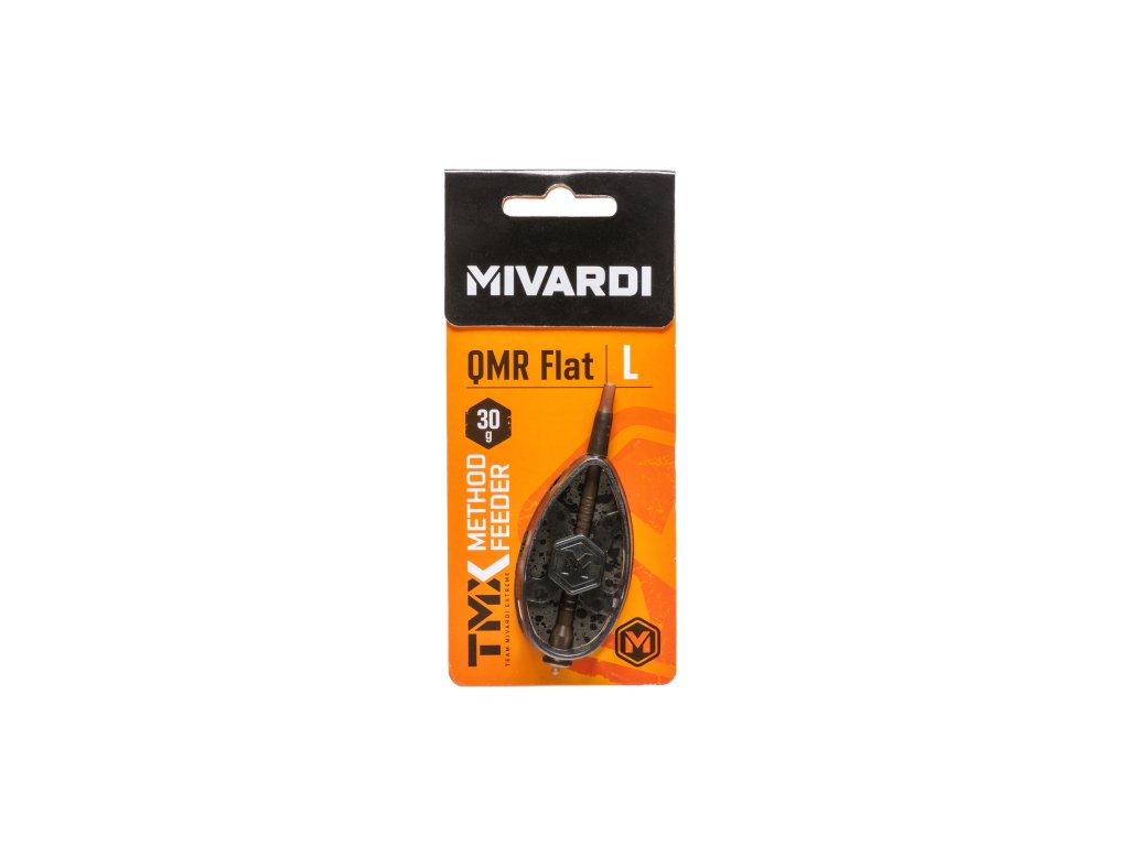 Nová generace method krmítek od značky Mivardi se systémem QMR. Ten umožňuje snadnou výměnu krmítka na hotové montáži za jiný typ nebo velikost velikost krmítka QMR během několika vteřin. Tělo krmítka je precizně odlito z odolného plastu v kouřově olivovém zabarvení. Zátěže na spodní straně krmítka jsou v maskovacím designu. Tvar krmítka je navržen pro použití s hrubšími návnadami a mikropeletami. Zvýšená přední část spolehlivě drží návnadu i při lovu na extrémně dlouhé vzdálenosti. Krmítko se dodává s adaptérem pro rychlou výměnu připojeného návazce a převlekem proti zamotání.Doplňkové parametry