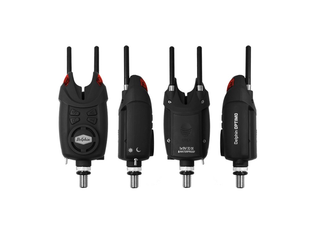 Sada Delphin OPTIMO navazuje na enormní úspěch sad od značky Delphin. Tato sada poskytuje možnost světelné, zvukové i vibrační signalizace. Je 100% voděodolná a signalizátory jsou napájeny 9V bateriemi, což zaručuje dlouhou životnost. Přijímač je napájen 3xAAA (mikrotužky) bateriemi. Kromě vysoké výdrže patří mezi největší výhody této sady dosah- až 200 metrů v závislosti na okolních podmínkách! Snag Geary (rohy) je možné šroubovat přímo na závity, které se nacházejí na těle signalizátoru, což jednoznačně usnadňuje manipulaci. Při nastavování sady na lovném místě určitě oceníte i 20 sekund trvající tichý mód, během kterého můžete se signalizátory manipulovat bez vydávání tónů. Další možností je nastavení až 6 stupňů citlivosti záběru v rozmezí 1,5-10,5cm. Signalizátory mají 2 hlavní režimy- denní a noční. Při nočním je samozřejmostí svícení poziční diody. Signalizátory mají možnost nastavení tichého režimu a rozeznávají zpětný záběr. Navíc signalizátor záběru OPTIMO disponuje pamětí pro nastavenou výšku a tón signalizace, které si zapamatuje i po vypnutí! Sada Delphin OPTIMO 9V je tím pravým pro opravdové kapraře! Základní sadou která se nachází v pevném přenosném kufříku je 2 + 1, ale sadu je možné rozšířit až na 4 + 1 dokoupením signalizátorů, kdy obsahuje: 4x vodě odolný signalizátor, 1x přijímač, 4x signalizátor CSW-II a 4x pár Snag Gear. Ke každému zakoupenému hlásiči tedy přísluší řetízkový signalizátor a namontovatelné snag gear ZDARMA! Záruka je prodloužena až na 3 roky co jen dokazuje vysokou kvalitu tohoto produktu! Do kufříku této sady je možné uložit maximálně konfiguraci 3 + 1 (3ks signalizátorů a jeden přijímač). Sada 2+1 obsahuje vždy modrý a červený signalizátor. Sada 3+1 obsahuje vždy modrý, červený a zelený signalizátor. Sada 4+1 obsahuje vždy modrý, červený, zelený a žlutý signalizátor.Doplňkové parametry