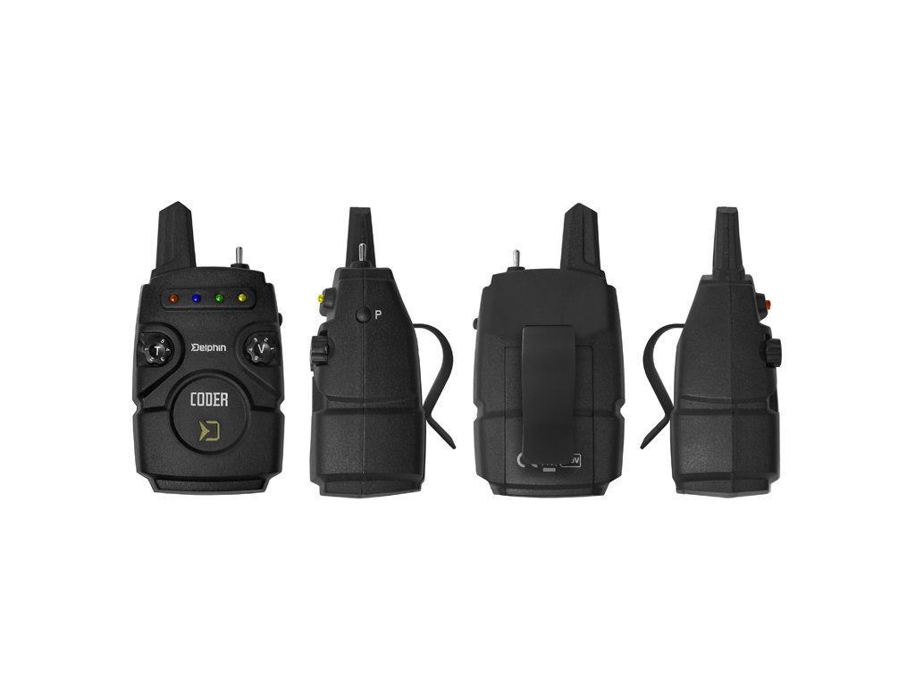 Delphin CODER je sada elektronických signalizátorů s příposlechem, u které se setkal ideální poměr příznivé ceny s výkonem. Jejími přednostmi jsou zejména spolehlivost a 100% funkčnost, kterou se může bez problémů rovnat i s dražšími sadami. Signál mezi signalizátory a příposlechem se dokáže v ideálních podmínkách přenést na vzdálenost až 140m. Celá sada je dodávána v tvrdém plastovém kufříku, který se stará o bezpečnost při transportu.Signalizátor je napájen 1x12V baterií typu LR23A, která disponuje dostatečně dlouhou výdrží. V případě slabé baterie vás signalizátor upozorní krátkým pípnutím. Pomocí spínače "V" je možné vybrat jednu z 5 úrovní hlasitosti, včetně tichého módu. Také si lze navolit požadovaný tón a úroveň citlivosti (v rozmezí 1-9cm), které mají také 5 různých úrovní. Nespornou devizou signalizátorů ze sady CODER je možnost výběru ze 7 barev signalizační LED diody. Každý si tak vybere svou oblíbenou a pokud zatoužíte po změně, tak si jednoduše zvolíte jinou barvu dle návodu. Na zpětný záběr vás upozorní odlišný tón a po každém záběru se rozsvítí na dobu 15 sekund paměťová dioda. Ve spodní části se nachází vstup pro 2,5 mm konektor pro připojení svítícího indikátoru. Během nočního lovu lze zapnout také poziční diodu.