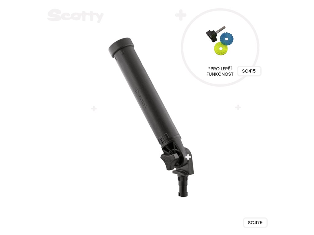 Všechny držáky prutu Scotty jsou plně nastavitelné nahoru i dolů