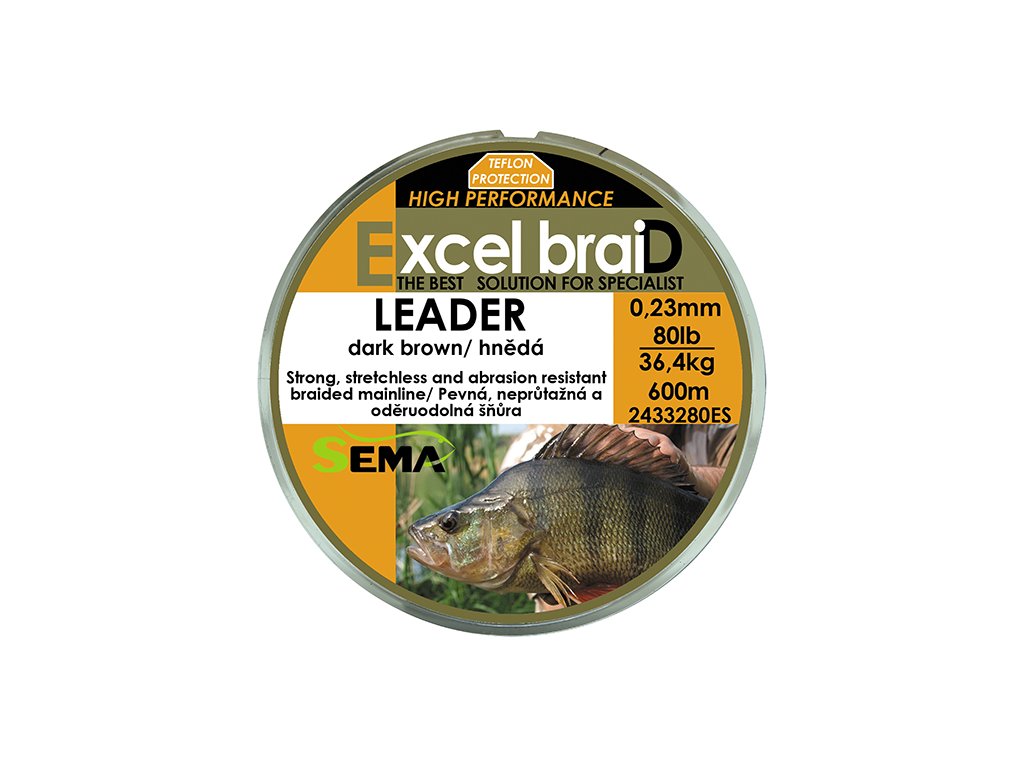 <p>Leader je šňůra pletená z 8 pramenů s Teflonovým potahem. Typ splétání a použití osmi pramenů ji dělá jemnější a lépe ohebnou. Teflonová ochrana ji zase chrání proti oděru a snižuje tření. Je tedy šetrná k očkám prutu a lépe se odvíjí z cívky navijáku, takže se s ní dosahuje delších odhozů. Návin 1800m je určen k lovu všech druhů sladkovodních dravých ryb nebo na multiplikátor při mořském rybolovu nebo na navíječku.</p> <ul> <li>Nosnost: 90,9kg</li> <li>Barva: zelená</li> <li>Návin: 1800m</li> </ul>Doplňkové parametry