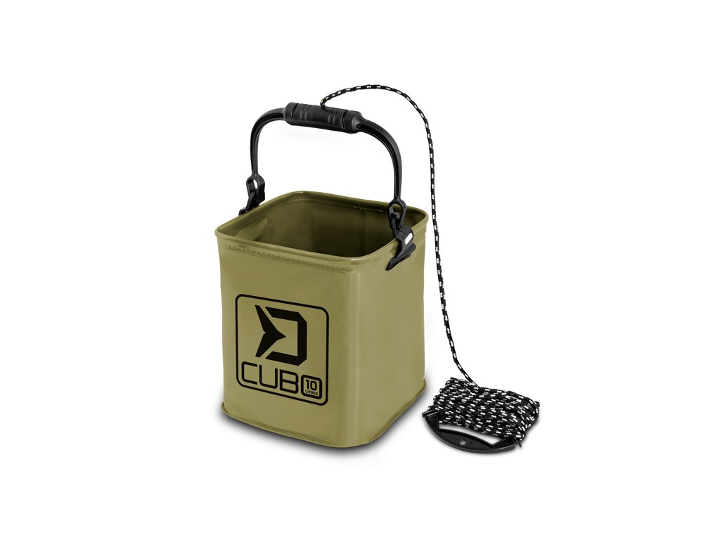 Delphin CUBO je praktické vědro, vyrobené z nepromokavého EVA materiálu s minimálními transportními rozměry, díky čemuž nezabere ve vaší výbavě téměř žádné místo. Své využití najde zejména při polévání úlovků na břehu, ale i při přenosu užitkové vody, přípravě krmení nebo v něm můžete jednoduše skladovat různé příslušenství během pobytu u vody. Specifické je svým hranatým tvarem, který obsáhne větší množství vody než vědro kruhového tvaru se stejnými transportními rozměry. Výhodou takového tvaru je také možnost, lít vodu buď pomaleji přes roh nebo prudce přes celou hranu kbelíku. Díky praktickému držadlu, na kterém je namotán provaz, je možné nabrat vodu i v těžkém terénu z větší výšky, případně z člunu. Devizou je také pevné plastové madlo, se kterým můžete naplněné CUBO bez problémů, dle potřeby přenášet. Delphin CUBO se prodává ve dvou velikostech: 5 L a 10 L. Technické parametry: 5 L Rozměr: 18x18x20 cm Transportní rozměr: 18x18x5cm Délka provazu: 5 m 10 L Rozměr: 22x22x25 cm Transportní rozměr: 22x22x5 cm Délka provazu: 7 mDoplňkové parametry