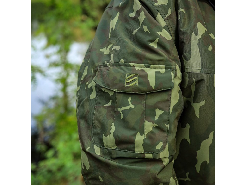 Perfektní bunda v jedinečném Sonik Camo vzoru, ve kterém budete vypadat super cool, navržená tak, aby chránila před větrem a deštěm a poskytovala rybářům maximální tepelný komfort. Bunda Heavy Weight Camo Jacket byla vyvinuta jako praktický a zároveň funkční oděv, který je nepromokavý a prodyšný. Vnějším materiálem je 100% nylon / 230T taslon. Je vybavena plně podlepenými švy a zateplenou vnitřní podšívkou. Díky zvolenému materiálu je rovněž plně prodyšná. Mezi další vlastnosti patří kvalitní přední zip YKK, zvýšený límec pro úplnou ochranu krku a stahovací šňůrka v pase. Bunda má dvě přední kapsy s horním a bočním přístupem, boční kapsu na rukávu, vnitřní kapsu na telefon, plně nastavitelnou kapuci, manžety na suchý zip a elegantní pogumované logo Sonik. Vlastnosti: • Voděodolná a prodyšná • Vodní sloupec: 5000 mm • Prodyšnost: 5000 g/m2 • Plně podlepené švy • Zvýšený límec pro maximální ochranu • Pogumované logo Sonik • Nastavitelná kapuce • Vnější materiál: 100% nylon / 230T taslonDoplňkové parametry
