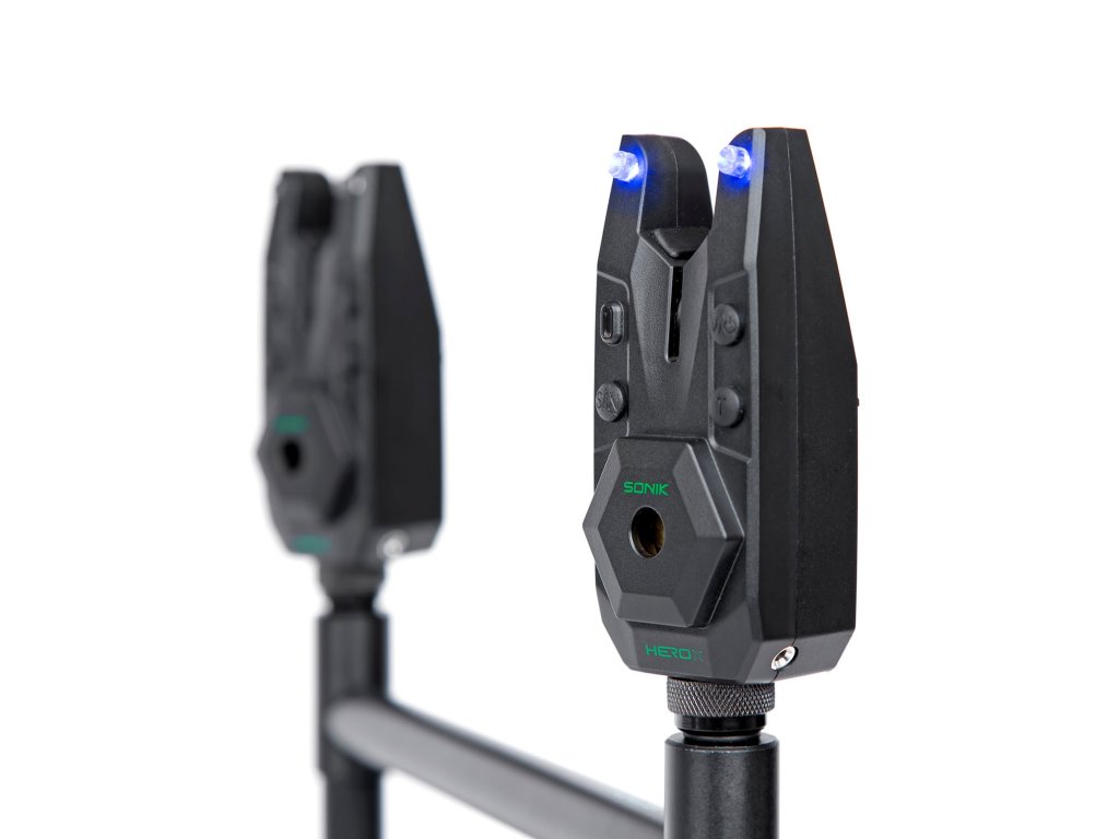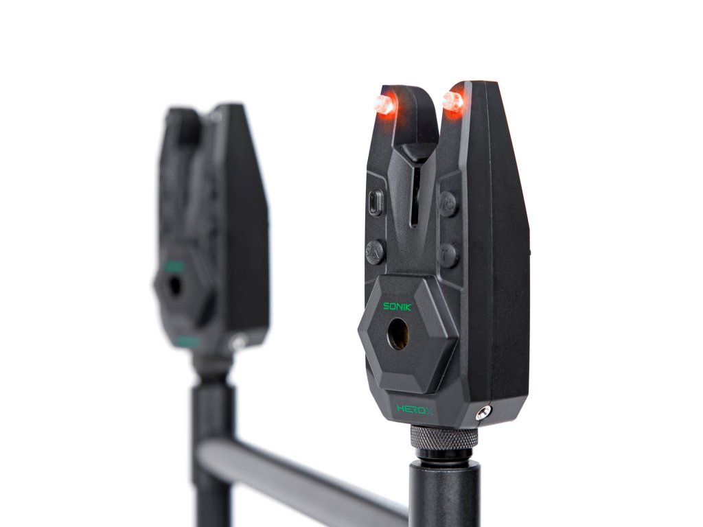 Ještě nikdy nebylo v této cenové kategorii tolik funkcí součástí jednoho hlásiče. Hlásič Sonik HEROX kombinuje nejnovější technologie s jednoduchými funkcemi, aby pro vás bylo jejich používání co nejsnadnější. Elegantní kompaktní design vás také jistě potěší Přijímač se může pochlubit čtyřmi kanály s jasnými LED diodami, které umožňují snadno zjistit, který alarm byl aktivován. Díky osmi úrovním hlasitosti včetně tichého režimu si můžete přijímač přizpůsobit svým preferencím. K dispozici je také zpětné blikání LED a funkce svítilny s nezávislým vibračním režimem, což je perfektní jako další upozornění, nebo když chcete rybařit bez jakéhokoli zvuku. Zahrnutí automatického bivakového světla přidává zcela novou úroveň pohodlí a nabízí fantastický poměr cena/výkon. Použijte jej samostatně jako tradiční světlo do bivaku nebo jej nastavte tak, aby se aktivovalo při spuštění alarmu. Funkce tak užitečná, že se budete divit, jak jste se mohli bez ní doteď obejít. Vlastnosti hlásiče: • Dvě vysoce kvalitní 5mm LED diody • 8 úrovní citlivosti • 8 úrovní hlasitosti a tónů (včetně tichého režimu) • Inteligentní režim ztlumení • 2,5mm konektor pro připojení swingeru • Funkce Nightglow LED • Dosah až 150 metrů • Vodotěsné tělo a gumové vložky pro ochranu blanku prutu • Upozornění na vybité baterie • Napájení 2x AAA baterie (nejsou součástí balení) Vlastnosti příposlechu: • 4 kanály (červené, zelené, modré a oranžové LED světlo) • Na jednu pozici kanálu lze napárovat až 4 hlásiče najednou • 8 úrovní hlasitosti včetně tichého režimu a vibrace • Dosah až 150 metrů • Varování před vybitou baterií • Napájení 3x AAA baterie (nejsou součástí balení) Vlastnosti světla: • Manuální režim zapnutí světla nebo zapnutí při záběru • V pozadí světla svítí LED dioda v barvě hlásiče • Dosah až 150 metrů • Dodáváno s magnetickou deskou a elastickým poutkem na bivak • Tři úrovně jasu • Varování před vybitou baterií • Napájení 3x AAA baterie (nejsou součástí balení)Doplňkové parametry