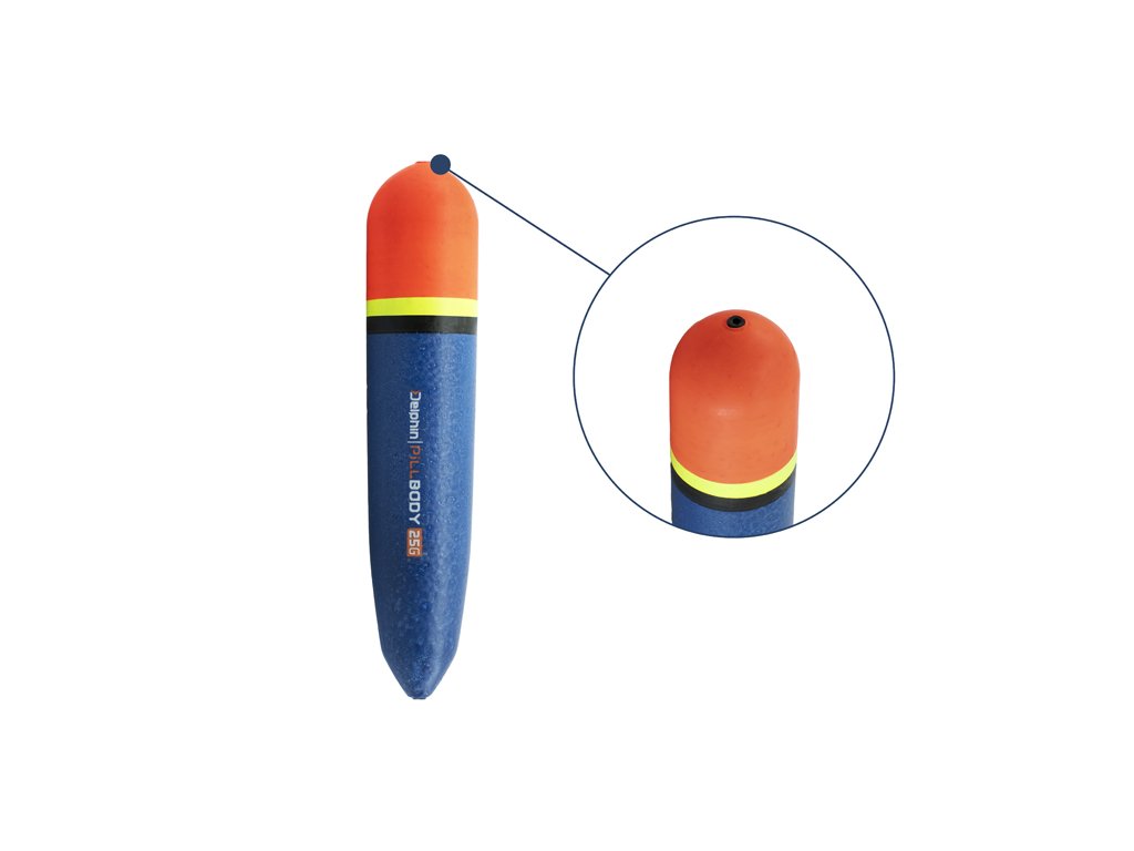 Ideální štikový splávek, štíhlého torpédovitého tvaru, určený pro lov s nástražní rybkou. Vrchní část, nacházející se nad vodní hladinou je výrazné červené barvy se žlutým a černým pruhem na rozhraní pro zvýšení kontrastu a viditelnosti. Naopak spodní část, která je ponořená pod hladinou je tmavě modré barvy, takže perfektně splyne s vodním sloupcem. PillBODY je průběžný splávek, takže jeho středem prochází trubička, přes kterou se navléká hlavní vlasec. U tohoto systému nehrozí, že se Vám splávek odtrhne nebo svévolně odpadne z montáže. Dodáváme jej v různých gramážích, takže je snadné najít si tu správnou velikost do každé situace.Doplňkové parametry