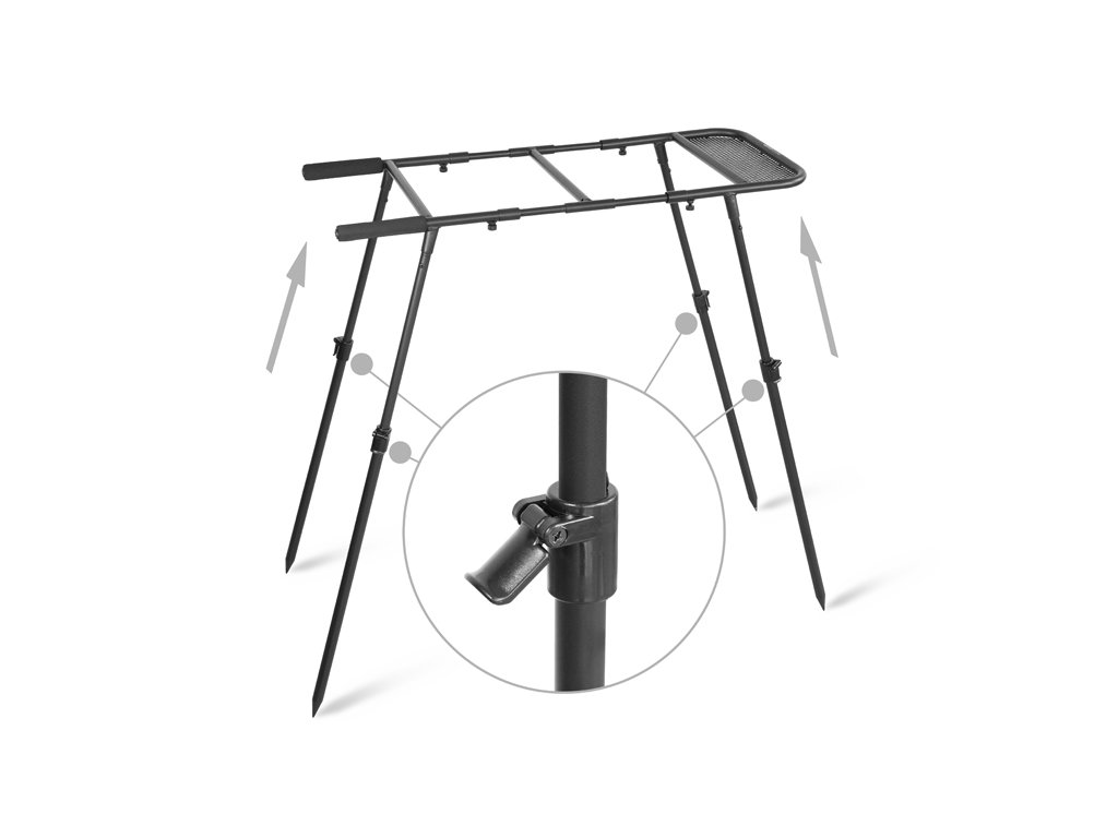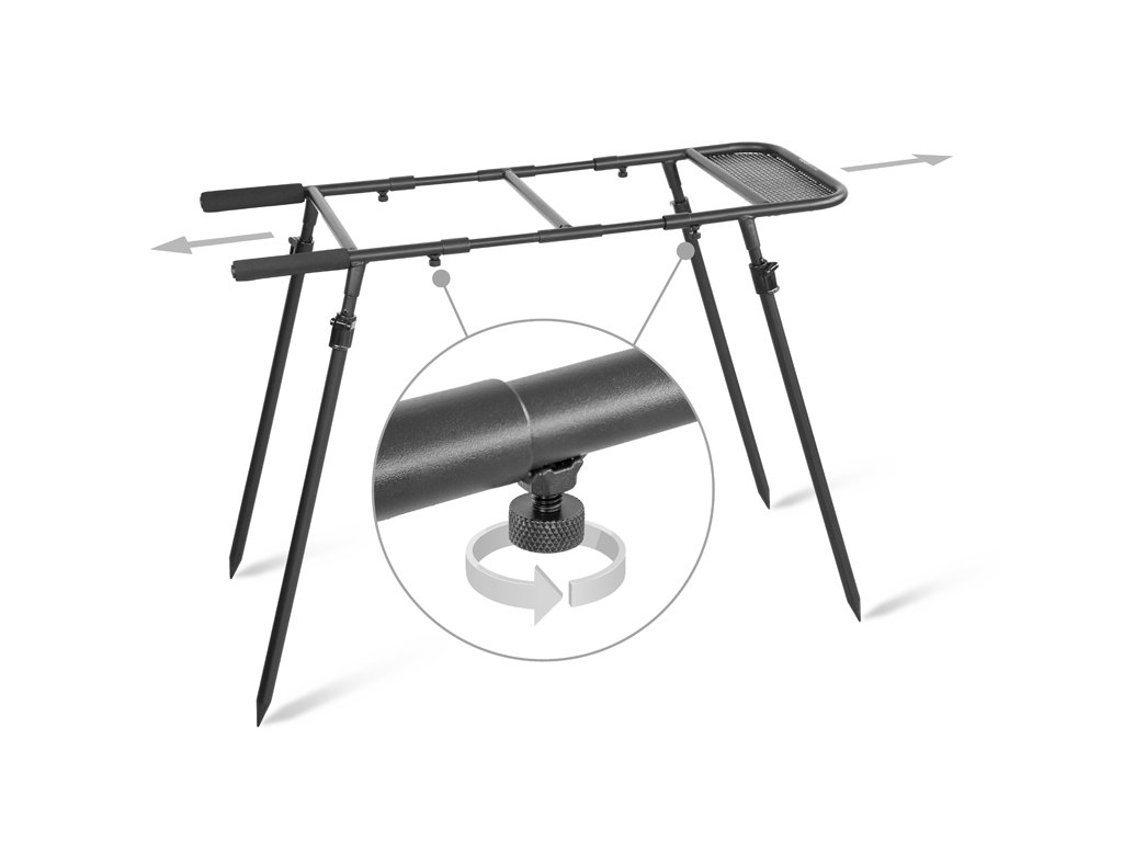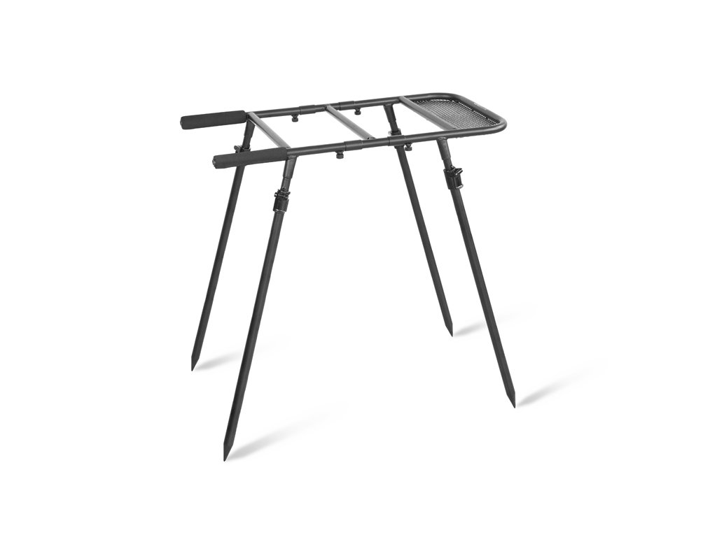 Delphin TOP SPOD je důmyslně navržený stojan na vědra s propracovanou konstrukcí, která nabízí stabilitu, ale zejména univerzálnost, umožňující osazení většiny standardních kbelíků používaných u kaprařiny.Konstrukce stojanu je vyrobena z kvalitních materiálů odolných vůči vnějším vlivům a mechanickému poškození. Stabilitu zajišťují čtyři odnímatelné nohy, které jsou navíc teleskopické, což umožňuje přizpůsobit výšku stojanu podle individuálních potřeb a terénu. Nohy je také možné použít i jako samostatné raszošky.