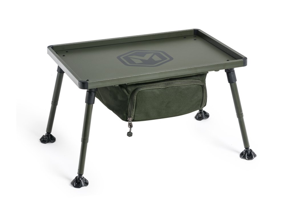 Nově navržený bivakový stolek větší velikosti s úložným prostorem pod deskou. Úložný prostor je uzavíratelný na zip a jeho dno je zpevněno lehkou ale dostatečně tuhou deskou. Celokovová konstrukce hlavní desky je zárukou tuhosti a dlouhé životnosti. Teleskopické nohy jsou vybaveny luxusními výkyvnými patkami a systémem rychlé aretace výsuvu. Dovolují zároveň postavení stolku v nadstandardní výšce. Velmi snadné je i vyklápění a sklápění noh. Stolek je dodáván v praktickém přepravním pouzdře s uchy na přenášení.Doplňkové parametry