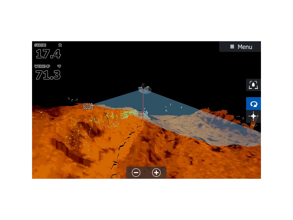 HD a extra široké 3D skenování – detailní zobrazení podvodního terénu do stran lodi (až 600 stop na levobok i pravobok) ve vysokém rozlišení.