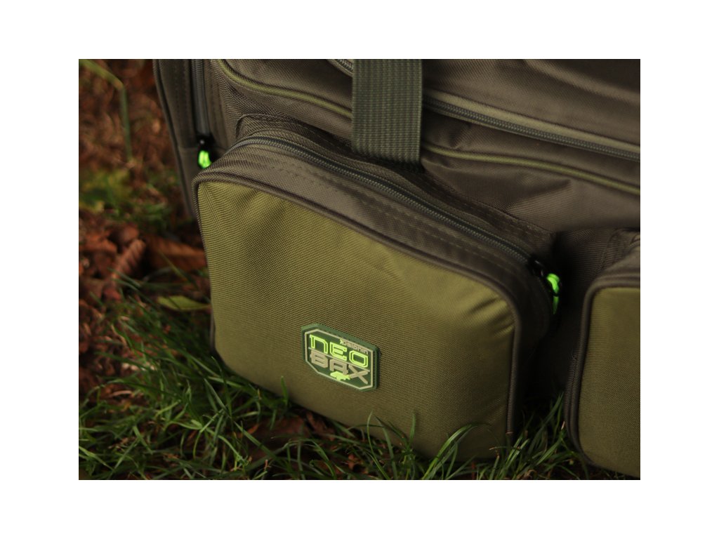 Hlavní úložný prostor doplňují čtyři prostorné kapsy se zipem, umístěné na přední a bočních stranách tašky. Boční kapsy mají ideální rozměry pro uložení dokladů či různého rybářského příslušenství, například cívky s náhradním vlascem.