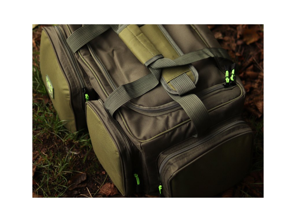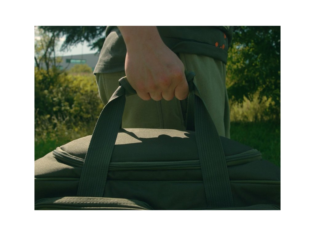 Odolná a praktická CarryAll taška vyznačující se velkým úložným prostorem a spoustou praktických kapes, díky čemuž bez problémů pojme rybářskou výbavu i oblečení. Díky svým rozměrům nabízí dostatek úložného prostoru a spolehlivě ochrání obsah před nepříznivými podmínkami. Vyrobená je z kvalitních materiálů, které prodlužují její životnost a zároveň chrání samotnou tašku.Pro maximální bezpečnost výbavy je celý vnitřní prostor důkladně polstrovaný – což v této cenové kategorii rozhodně není samozřejmostí. Spodní část je navíc opatřena nepromokavou vrstvou z odolného gumového materiálu, takže ji bez obav můžete položit i na mokrou či znečištěnou zem.