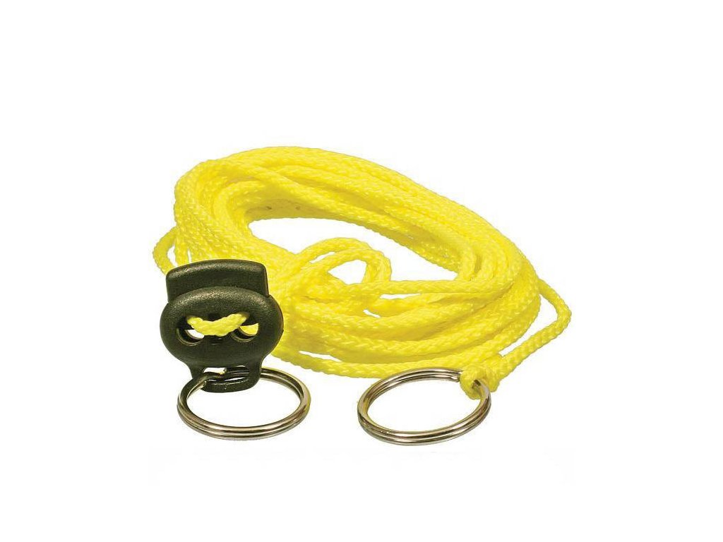 Tato žlutá šňůrka se dvěma kovovými kroužky na koncích vám usnadní práci s tyčkami. Její délka je přesně 13 stop (3,66 m), po stažení 12 stop (3,96 m), což odpovídá délkám běžně používaných kaprařských prutů. Nemusíte tak prut neustále pokládat na zem, ale jednoduše navléknete kovové kroužky na tyčky a napnete šňůru. To vám zajistí, že tyčky budou přesně 12, případně 13 stop od sebe. Šňůra je pevná a dobře viditelná, díky jasné žluté barvě.