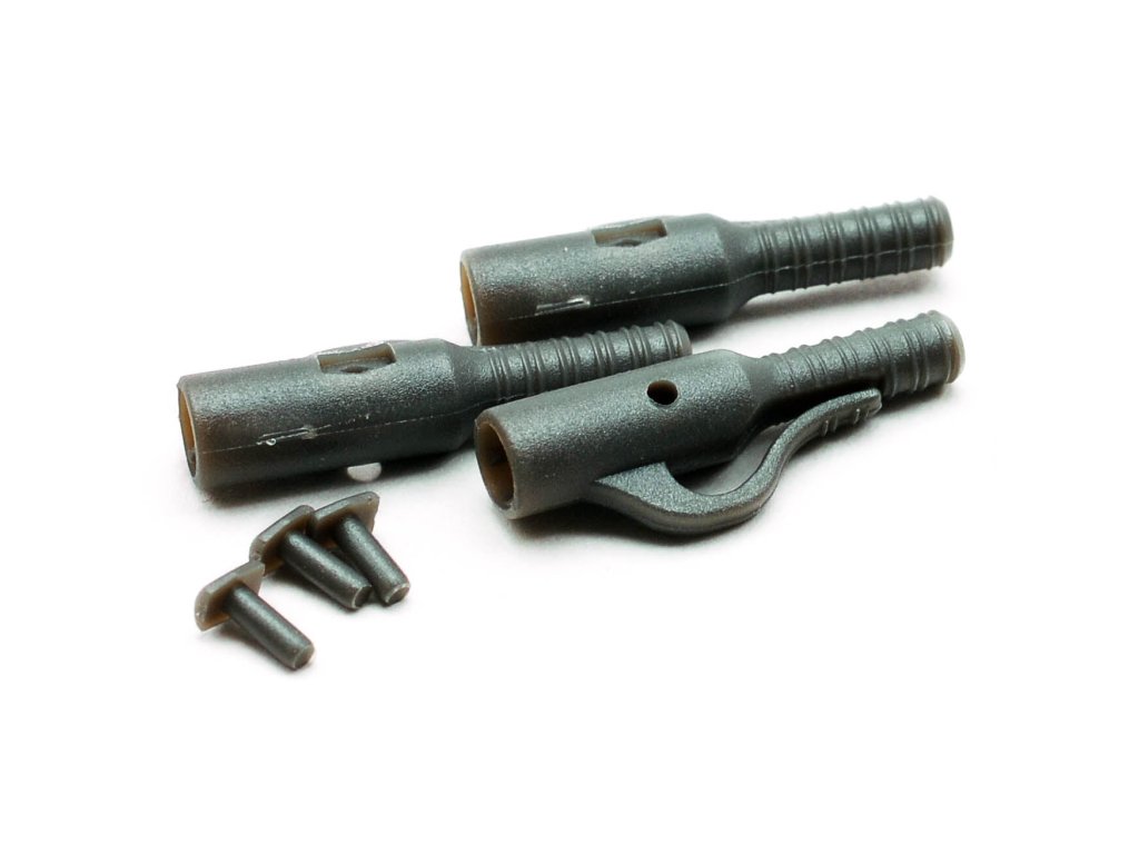 Taska závěsky na zátěž s jistícím kolíkem v hnědé, zelené a černé barvě. Velmi kvalitní výrobek za rozumnou cenu, bez kterého se žádný kaprař neobejde. 12 ks
