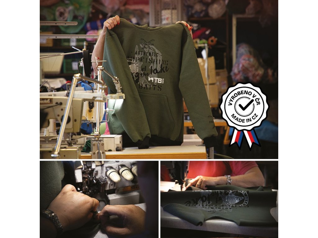 Ručně šitá kvalitní mikina od značky TB Baits vyrobena v ČR. Mikina TB Baits s označením Hexagon vyniká výrazným Camo hexagonovým logem značky TB Baits na hrudi. Na první pohled Vás zaujme netradiční barevná kombinace jednotlivých prvků mikiny. Kromě dominantní černé barvy má mikina několik částí v příjemné olivové barvě, jedná se o lemy, rukáv a kapuci. Mikina i rukávy jsou zakončeny elastickými lemy. Dvojitá kapuce pro maximální pohodlí. Kapuci lze stáhnout pomocí šňůrek zakončených kovovými koncovkami. Edice Hexagon nabízí ve stejném designu i tepláky a tričko. Materiál: 90 % bavlna / 10 % polyesterDoplňkové parametry