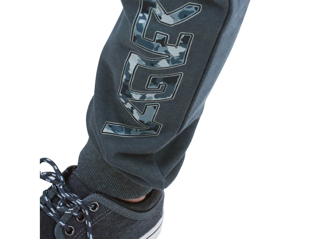 Dětské teplákové kalhoty MOSELLE z výplňkové pleteniny bez počesání rubové strany ve složení bavlna/polyester/viskóza a s plošnou hmotností 300g/m2 jsou opravdu bytelné. Kalhoty jsme opatřili dvěma kapsami v bočních švech, gumou v pase, a navíc s vnitřní regulací na knoflíčky. Dolní okraj kalhot je stažený do pružného nápletu. Na levé nohavici je tradiční potisk z kolekce VAGNER.
