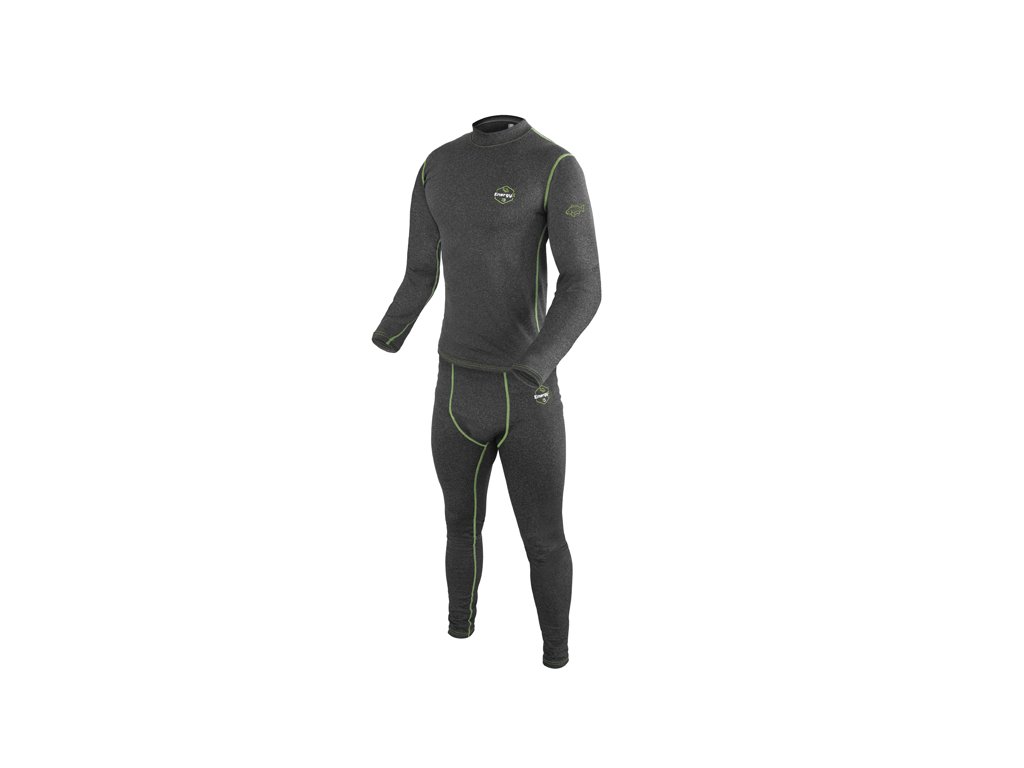 Nepodlehněte nástrahám chladného počasí a energicky vykročte na každou rybářskou výpravu s termoprádlem Delphin Energy X. Termoprádlo speciálně navržené pro rybáře, kteří milují volnost pohybu. Elastický materiál a ergonomický střih se dokonale přizpůsobí vaší postavě, díky čemuž budete nejen vypadat dobře, ale rovněž vám zajistí dokonalý komfort během nošení. Hřejivý materiál se postará o vaši teplotní pohodu a prodyšnost materiálu zároveň umožní tělu dýchat. Sportovní design v tmavě šedé barvě je doplněn o zeleno bílé logo a logo kapra na pravém rameni. Kromě rybolovu je termoprádlo vhodné i pro vyznavače aktivního životního stylu a pro každého, kdo si chce užít aktivní pobyt venku v suchu a teple. Správnou velikost oblečení si lze vybrat na základě velikostní tabulky. Vrchní díl Disponuje dlouhými rukávy a vyvýšeným límcem, což přispívá k udržení optimální tělesné teploty. Elastický límec, konce rukávů a spodní část jsou dodatečně prošívané pro zajištění dokonalého přilnutí ke kůži, aby se tím minimalizovaly úniky tepla. Spodní část vrchního dílu je mírně prodloužena, aby docházelo k ideálnímu krytí se spodky Delphin Energy X i při pohybově namáhavějších aktivitách. Spodní díl Pružný pás se svojí elasticitou přizpůsobí každému typu postavy a při nošení horního dílu zajistí jeho polohu i během aktivního pohybu. K udržení tepelného komfortu přispívá i zúžené ukončení spodního dílu v oblasti kotníků. Materiálové složení: 92% Polyester 8% ElastanDoplňkové parametry