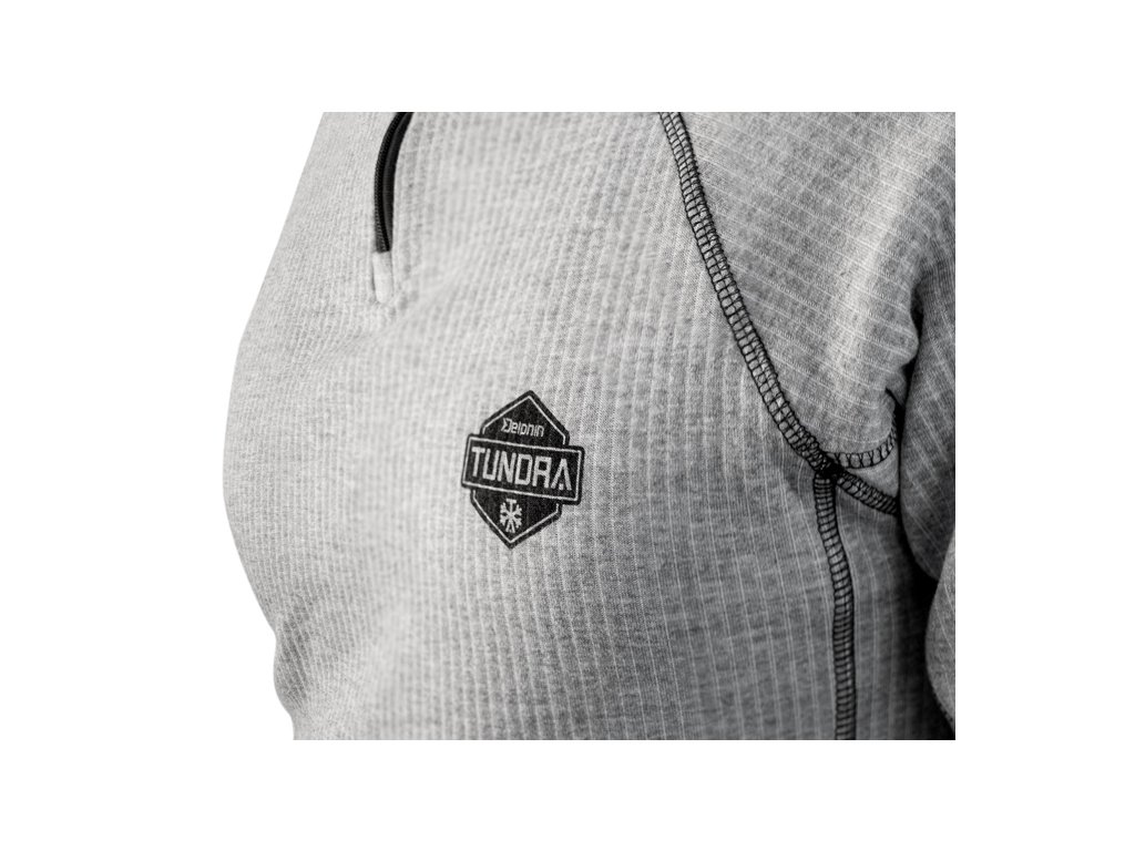 Teplo, komfort a vysoká kvalita - to jsou tři základní pilíře, na kterých jsme postavili termoprádlo Delphin TUNDRA. Kombinace 60% polyesteru a 40% bavlny vytváří na dotek velmi příjemný a pohodlný elastický materiál, který zajišťuje maximální komfort i během studených zimních dní. Dostupné spektrum velikostí S-XXXL dokazuje, že při navrhování jsme mysleli opravdu na každého. Barevně neutrální šedá barva s černým kontrastním šitím dokonale zosobňuje velmi pestré použití tohoto termoprádla, ať už jste na rybách, na lovu, nebo se věnujete zimním sportům. Vrchní díl Disponuje dlouhými rukávy a jeho výhodou přispívající k udržení tělesné teploty je vyvýšený límec se zipem. Navíc je zip z vnitřní strany kompletně překryt látkou, díky čemuž nehrozí žádný nepříjemný dotek na krku. Spodní část je mírně prodloužena, aby docházelo k ideálnímu krytí se spodní částí Delphin TUNDRA i při pohybově obtížnějších aktivitách. Spodní díl Vyniká na něm pružný pás s logy firmy Delphin, který se svou elasticitou dokonale přizpůsobí každému typu postavy. K udržení tepelného komfortu přispívá i zúžené ukončení spodního dílu v oblasti kotníků. Vrchní část je mírně prodloužena, aby docházelo k ideálnímu krytí s vrchním dílem Delphin TUNDRA i při pohybově obtížnějších aktivitách.Doplňkové parametry