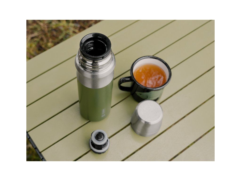 Ať už vás čeká mrazivé ráno nebo horký letní den v přírodě, termoska Delphin TERMA se postará o to, aby si váš nápoj udržel ideální teplotu po překvapivě dlouhou dobu. Konstrukce termosky s objemem 600ml sází na dvoustěnné provedení z nerezové oceli, které zajišťuje vynikající tepelnou izolaci za jakýchkoli podmínek. Odolný povrchový materiál navíc chrání tělo termosky před nárazy a poskytuje jistý úchop.O dokonalé těsnění se stará propracovaný uzávěr, který v zataženém stavu nepropustí ani kapku tekutiny. Praktickým prvkem je vrchní uzávěr termosky, který po odšroubování slouží jako plnohodnotný šálek. Nemusíte tak sebou nosit další nádobí navíc, což oceníte zejména při balení na vycházky, kde potřebujete co nejvíce minimalizovat objem vaší výbavy.